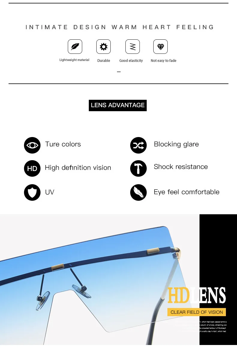 Солнцезащитные очки без оправы UV400 для мужчин и женщин, роскошные...