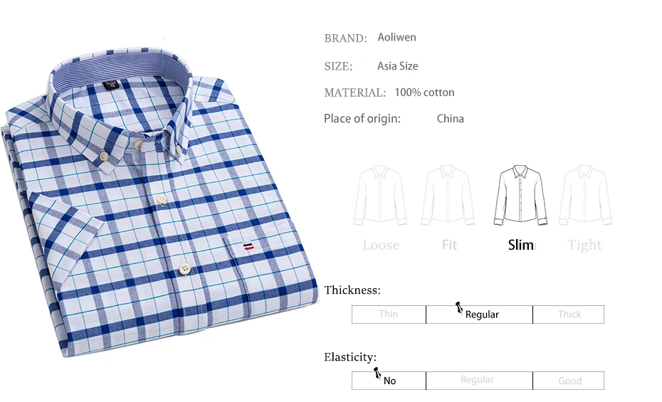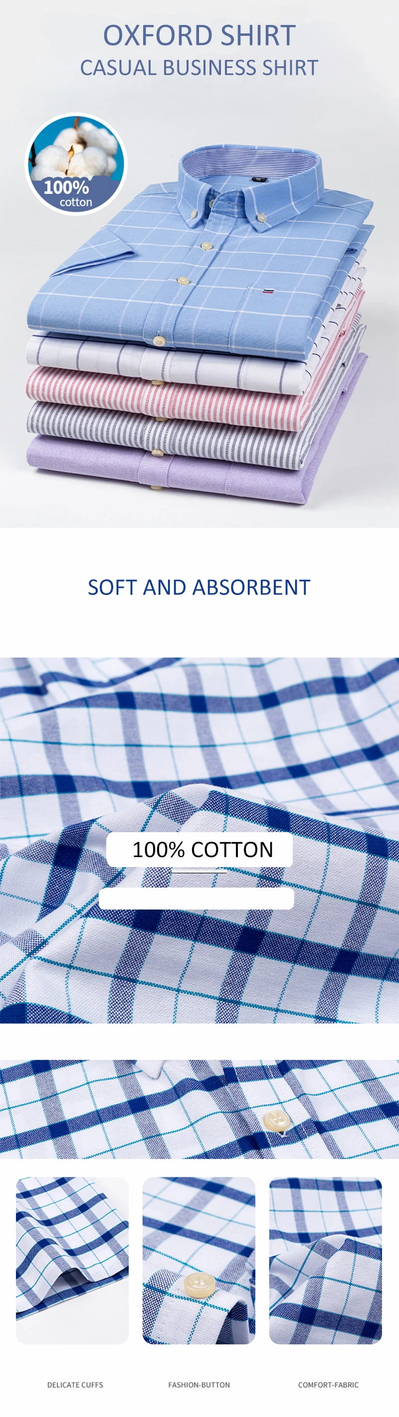 Рубашка мужская AOLIWEN, из 100% хлопка, в клетку, с коротким рукавом, впитывающая пот, лето 2021