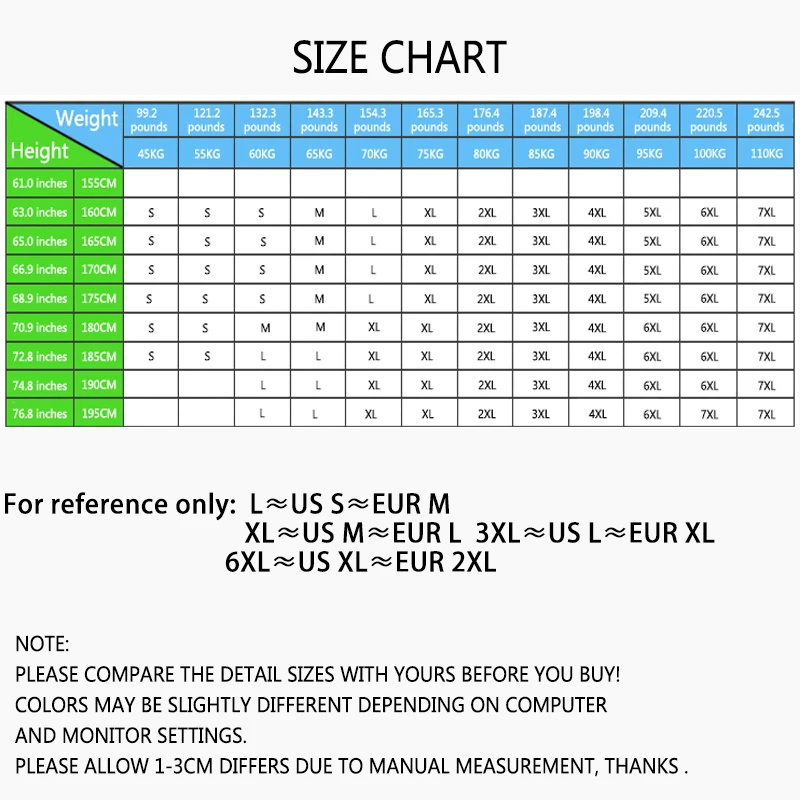 S M L XL 2XL 3XL 4XL 5XL 6XL 7XL(Asian size)