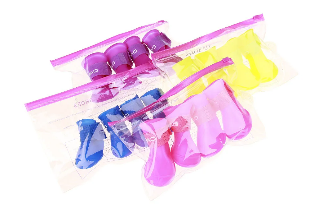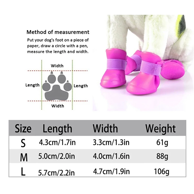 Безопасные и прочные продукты для вашего питомцаМилые Сапоги-это защитная непромокаемая обувь для вашей милой собаки, которая изготовлена из прочного и гибкого резинового материала.Модный дизайн ярких цветов, подчеркнет вашего питомцаЛегко и удобно носить с волшебной лентойПротивоскользящий дизайн на нижней части обуви для домашних животныхВодонепроницаемый, отлично одевается в дождливые дниОчистите и легко постирайте