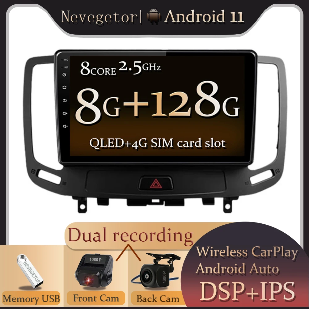 Автомагнитола на Android 11,0, мультимедийный проигрыватель для Infiniti G4, G25, G35, G37, 128-2006, GPS-навигация, 2din, dv