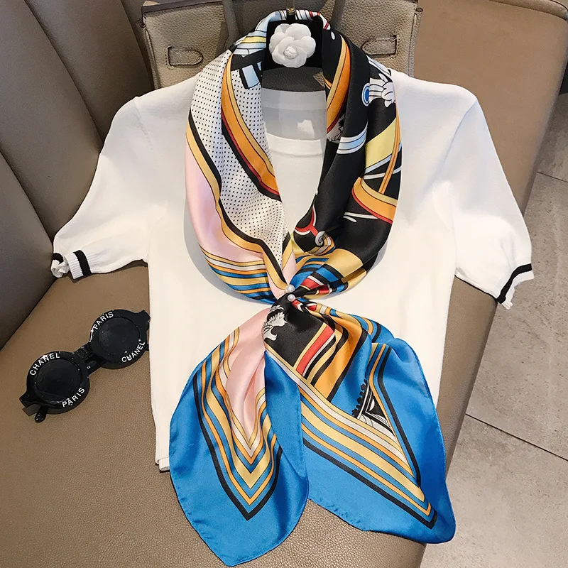Роскошный модный Шелковый квадратный шарф для женщин 90*90 см, шейный платок, повязка для волос, мягкий шейный платок, хиджаб, головной платок, женский платок
