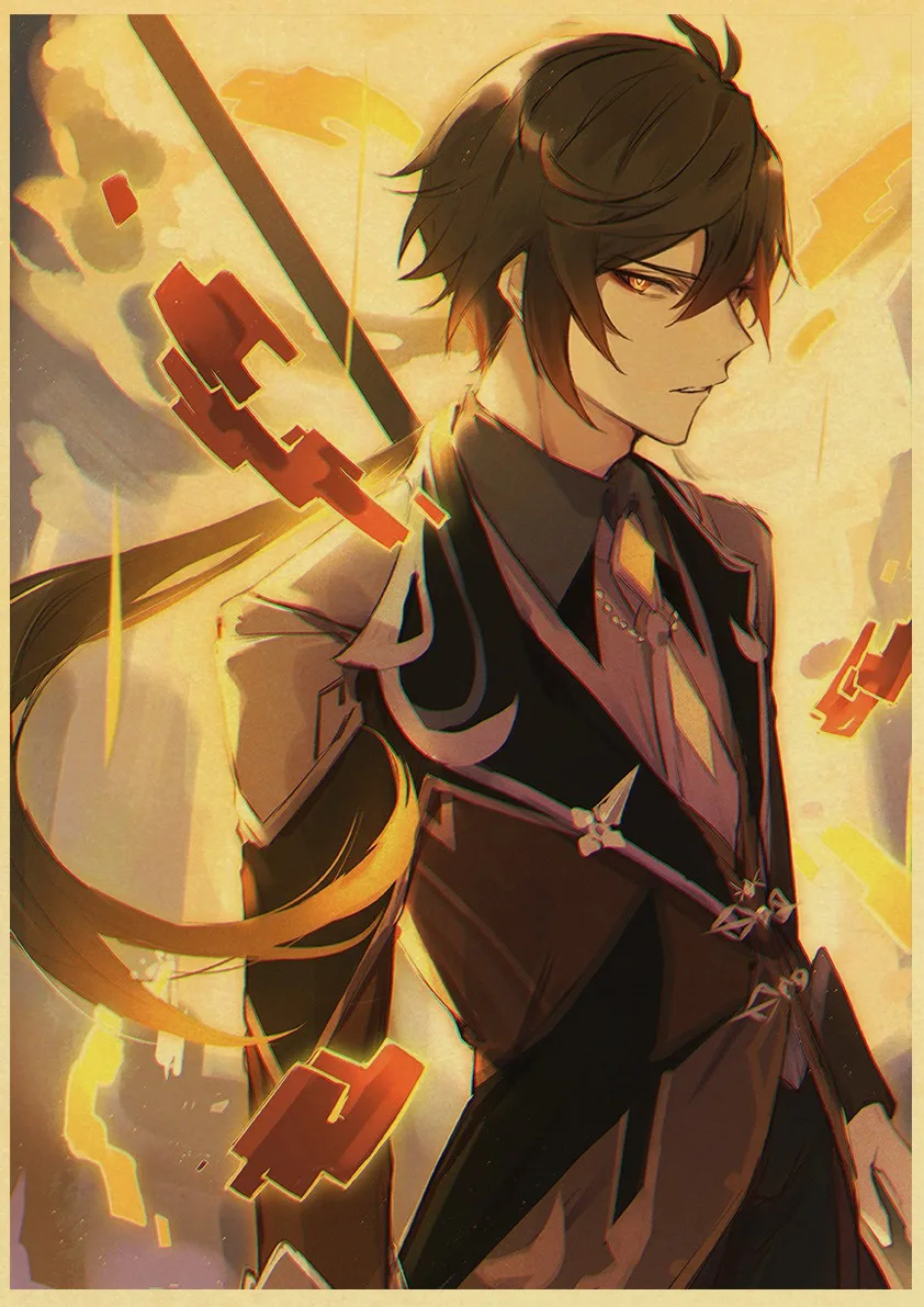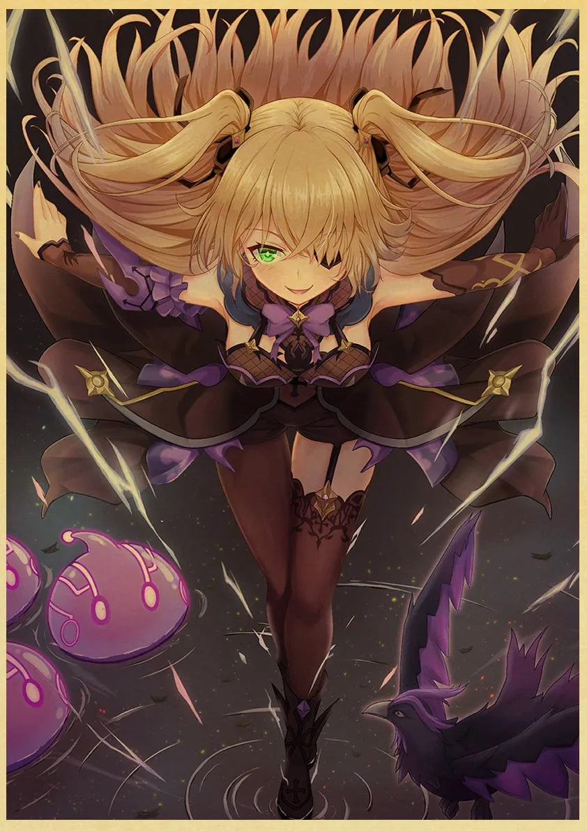 Постеры Genshin Impact из крафт-бумаги, принты для декора домашней ...