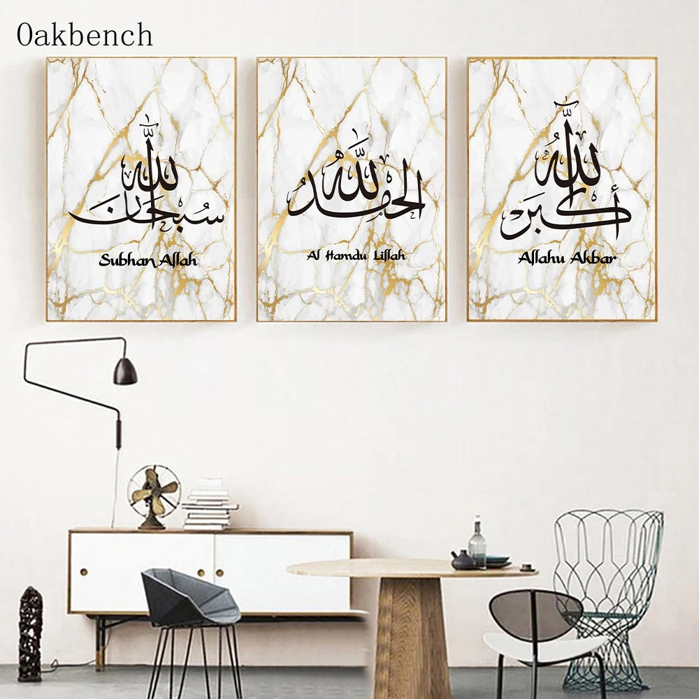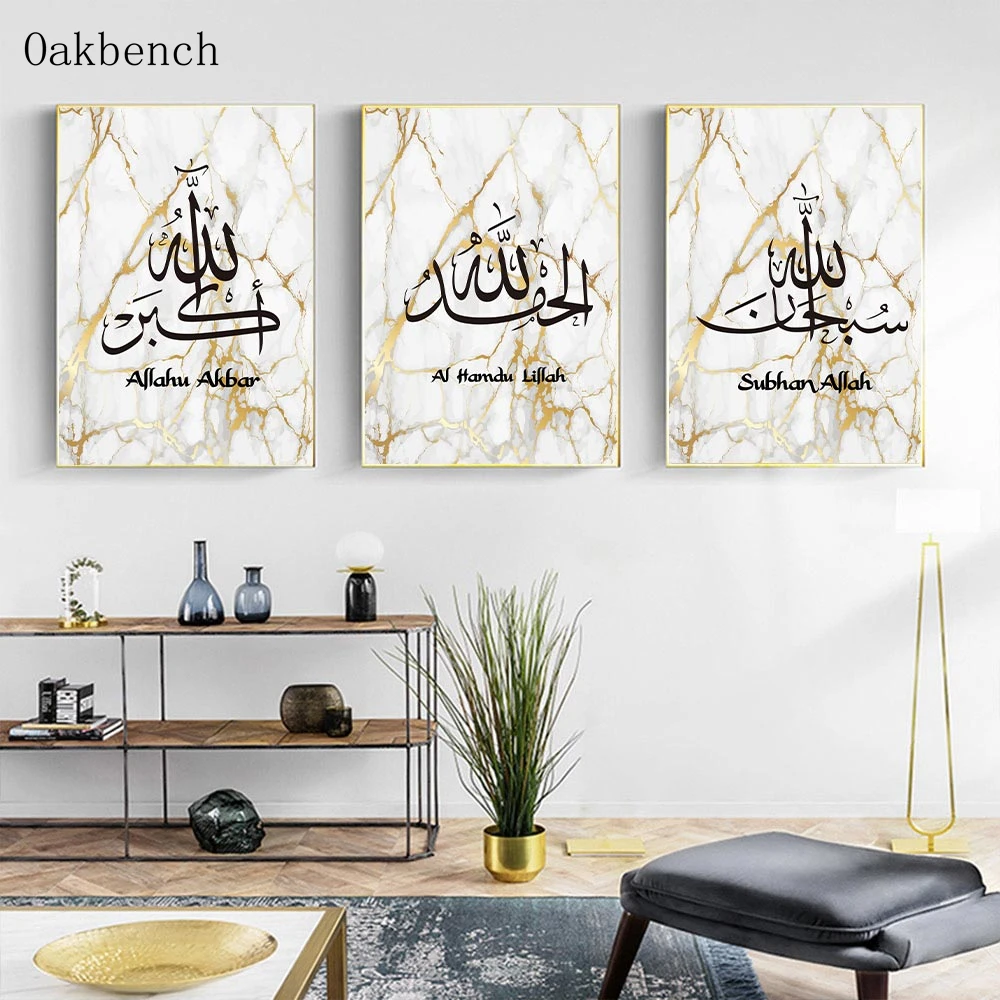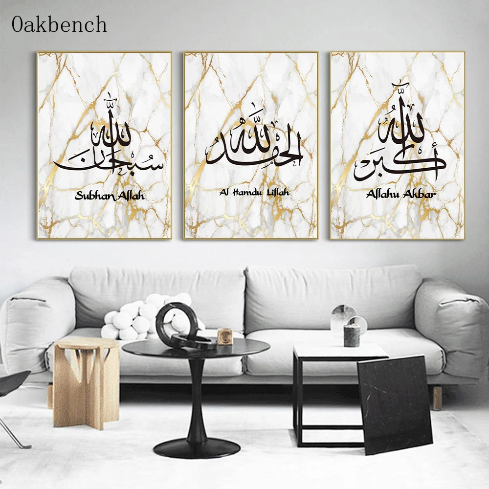 Исламский плакат Аллах печать на холсте Арабский каллиграфические плакаты картина с цитатами Золотой Мрамор картина мусульманская Настенная картина домашний декор
