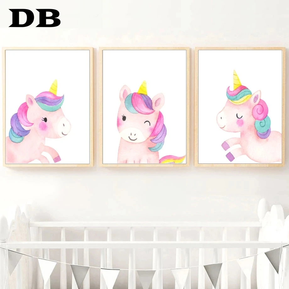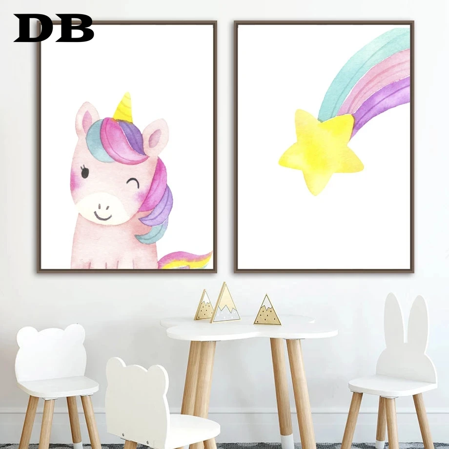 Мультфильм единорог Радуга облако звезды скандинавские плакаты и принты настенное искусство холст живопись настенные картины для детской комнаты декор
