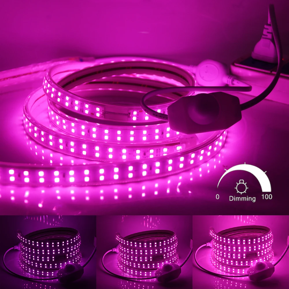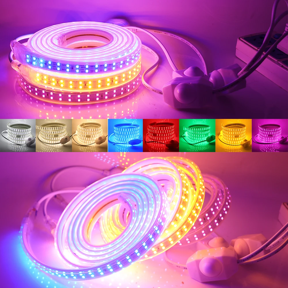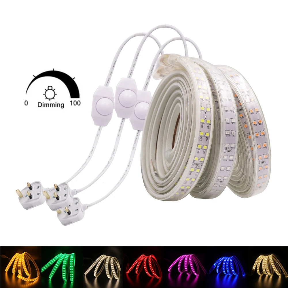 SMD2835 180 светодиодовм затемнения светодиодные ленты светильник 220V двухрядные Водонепроницаемый Светодиодная лампа стандарта ЕС, США, Великобритании Мощность Гибкая ленточная веревка