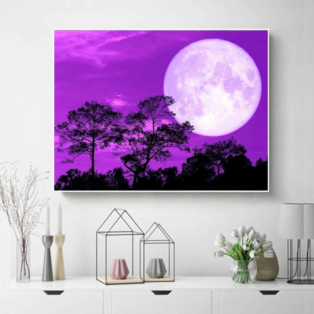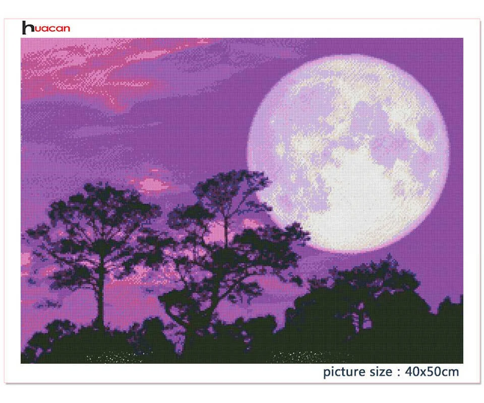 Алмазная живопись Huacan, лунная ночь, пейзаж, искусство, вышивка стразами, фэнтези, пейзаж, мозаика, Настенный декор