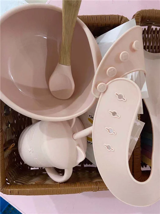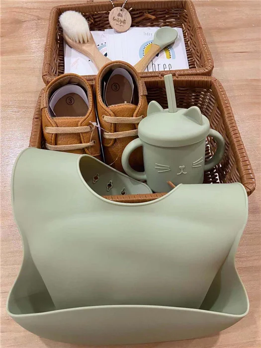 Детский однотонный набор детской еды, Детская силиконовая Радужная игрушка для укладки, Детские рожденные винтажные блюда, подарочная коробка