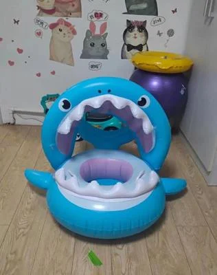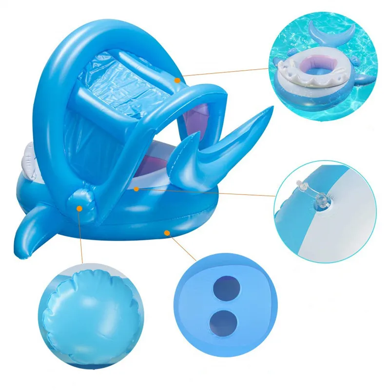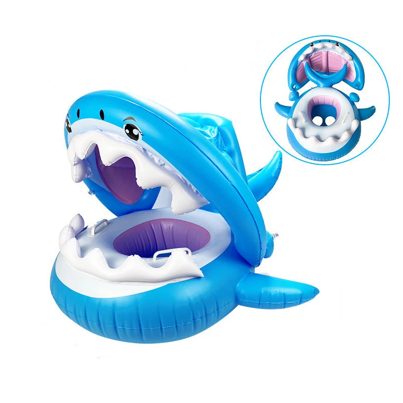 Плавательное кольцо в виде акулы, Надувное плавающее кольцо из ПВХ с тентом от солнца, детский плавательный бассейн для детей, пляжные аксессуары