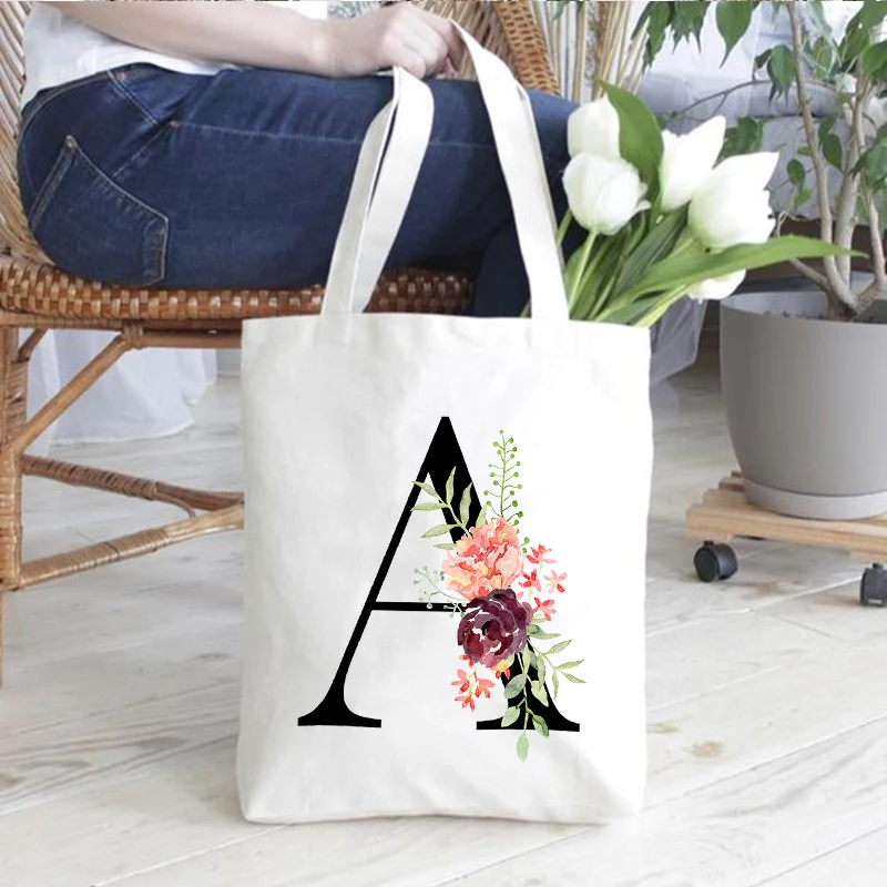 Модные женские холщовые сумки для покупок с цветочным принтом алфавита, повседневные вместительные женские сумки на плечо, дорожные сумки в стиле Харадзюку
