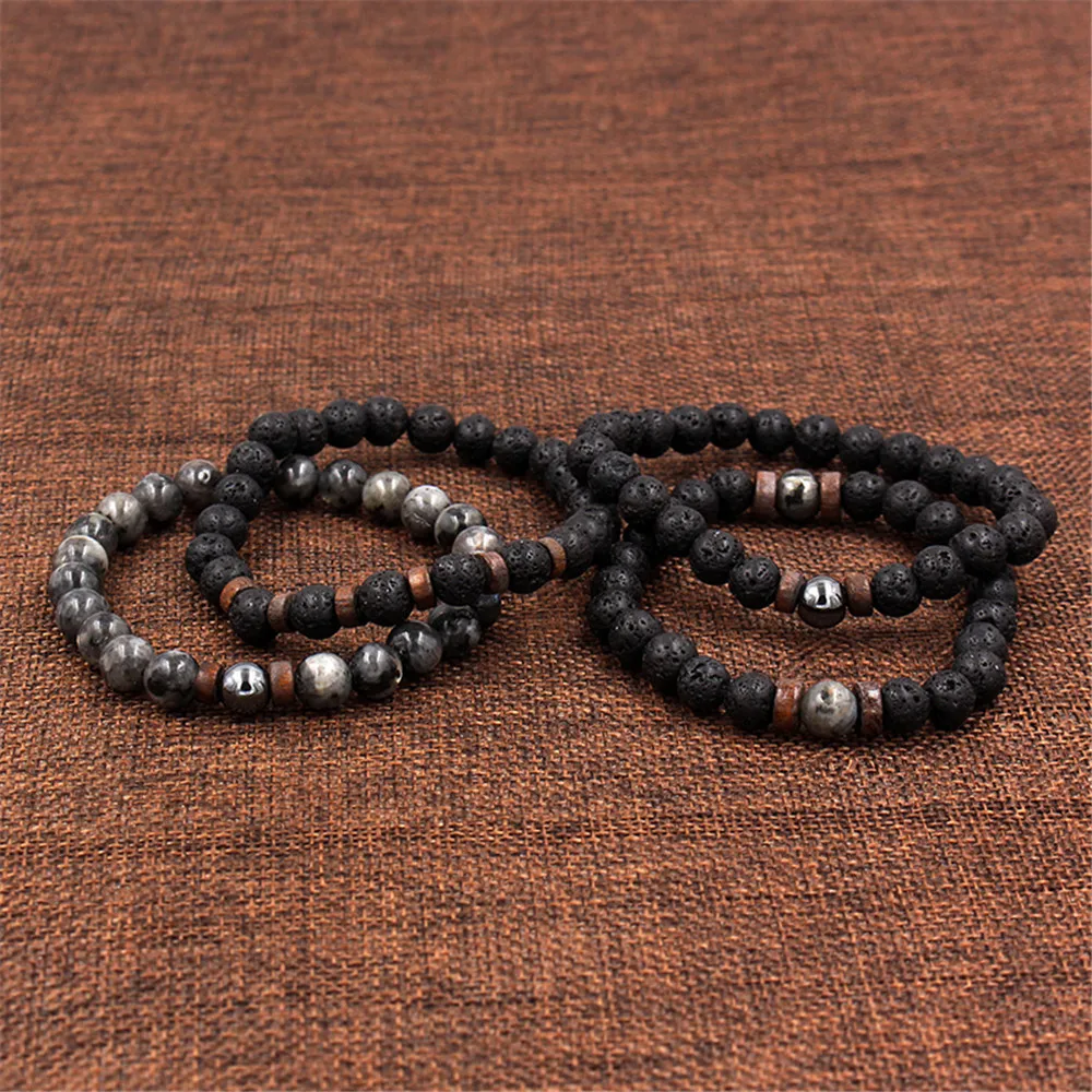 Винтажные браслеты, мужские браслеты, браслет из вулканического камня черного железа