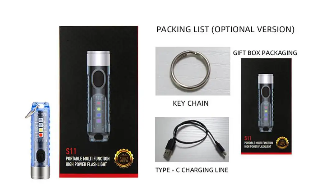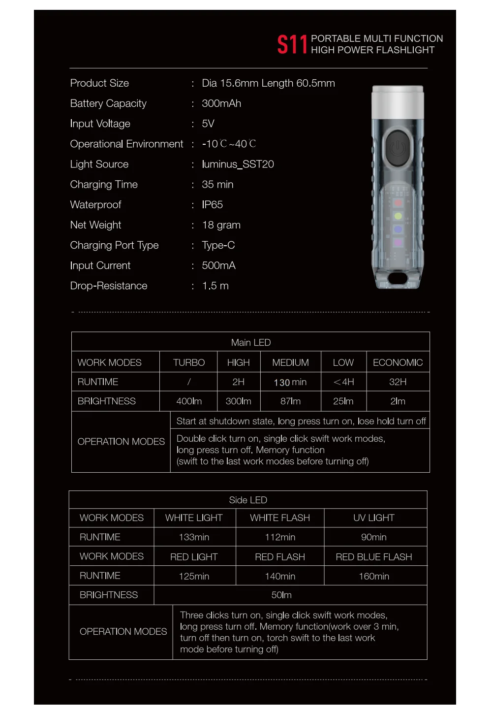 SEEKNITE S11 400LM 6500K USB Перезаряжаемый EDC брелок-фонарик с 6 ...