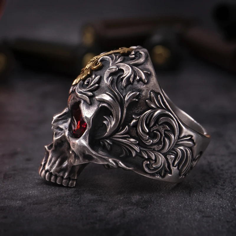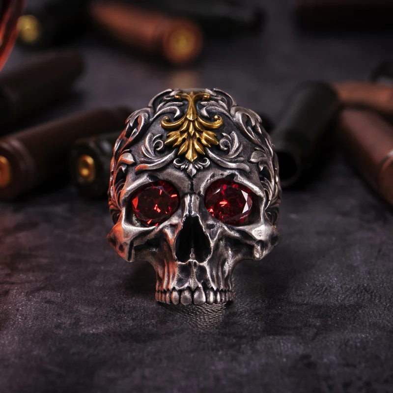 Мужское кольцо с черепом Fire God Red Eye Кольцо с демоном в винтажном готическом стиле