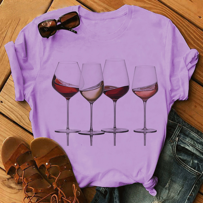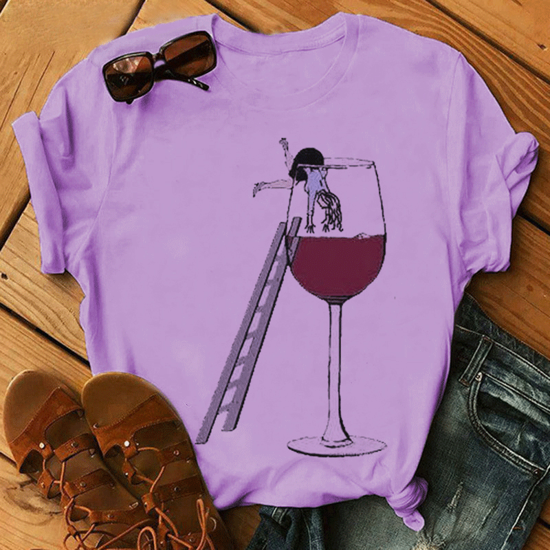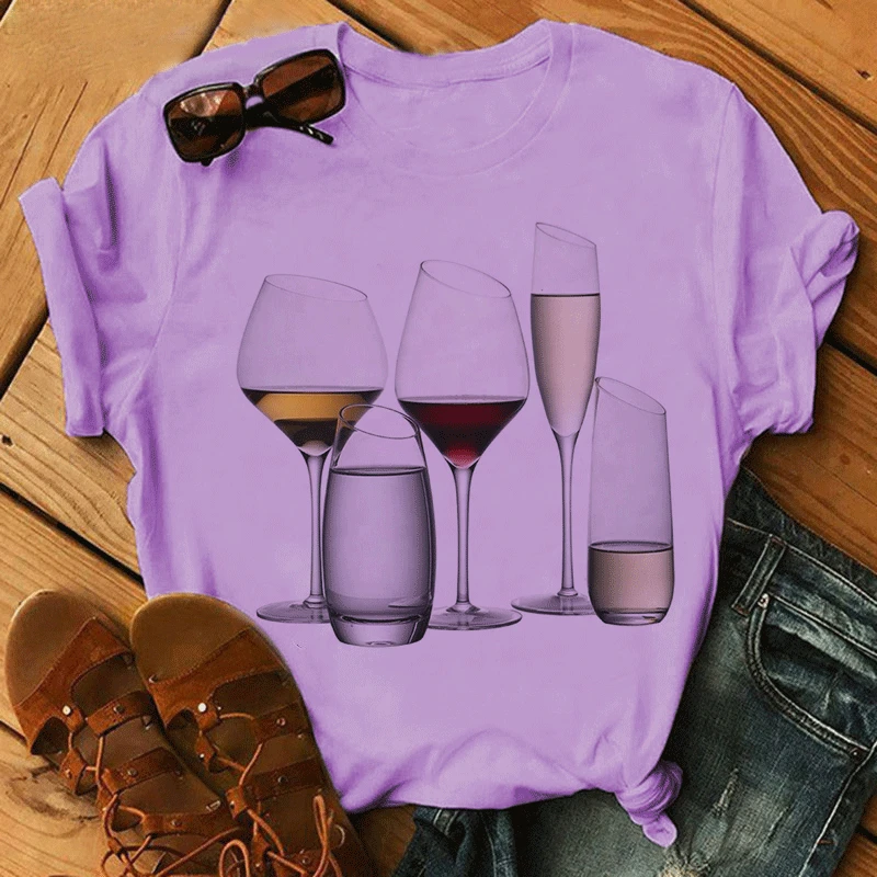 Женский пуловер с принтом винного цвета, с коротким рукавом, повседневный мультяшный пуловер, модный топ, пуловер с графическим рисунком, Женский пуловер, одежда