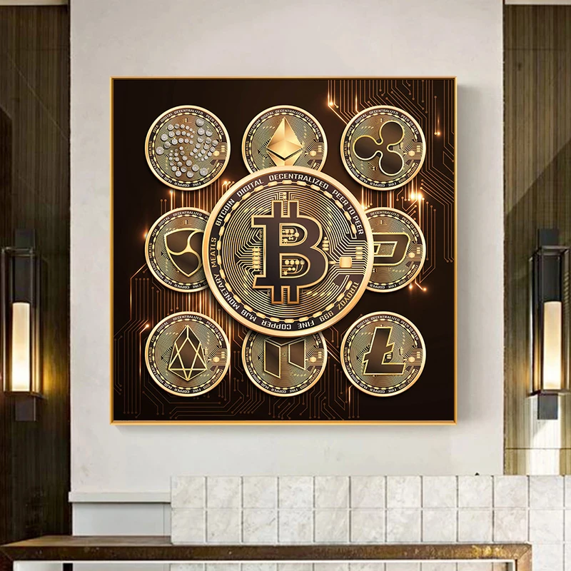 Современная Скандинавская картина Биткоин на холсте, роскошные постеры и принты, настенные картины для гостиной, украшение для дома