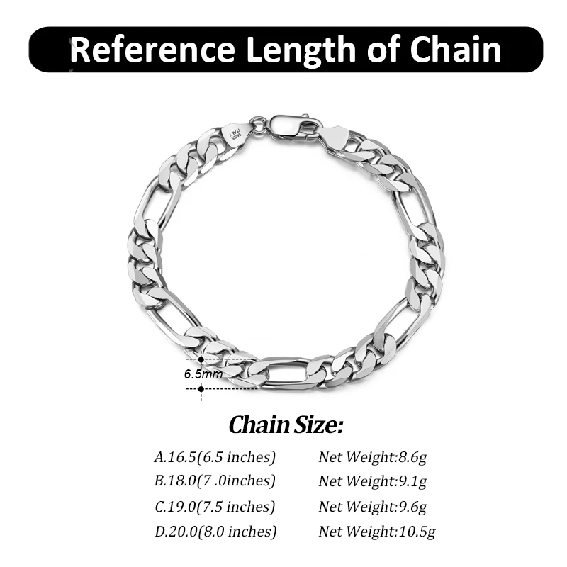 Длина цепочки: 6,5 дюйма (16,5 см),7 дюймов (17,5 см), 7,5 дюймов (19 см), 8 дюймов (20 см)