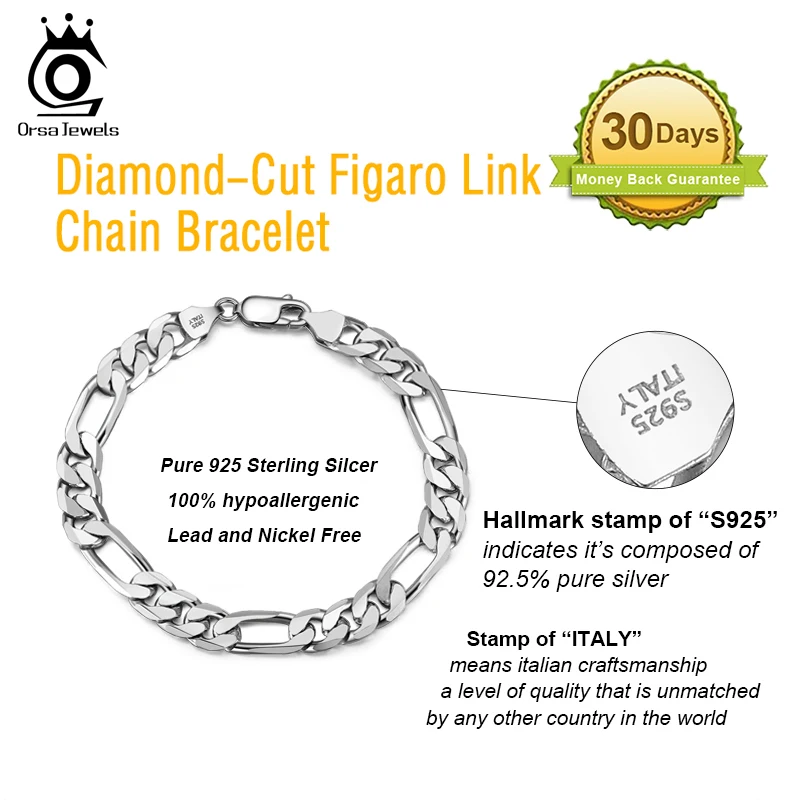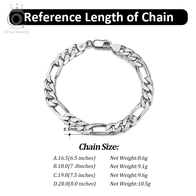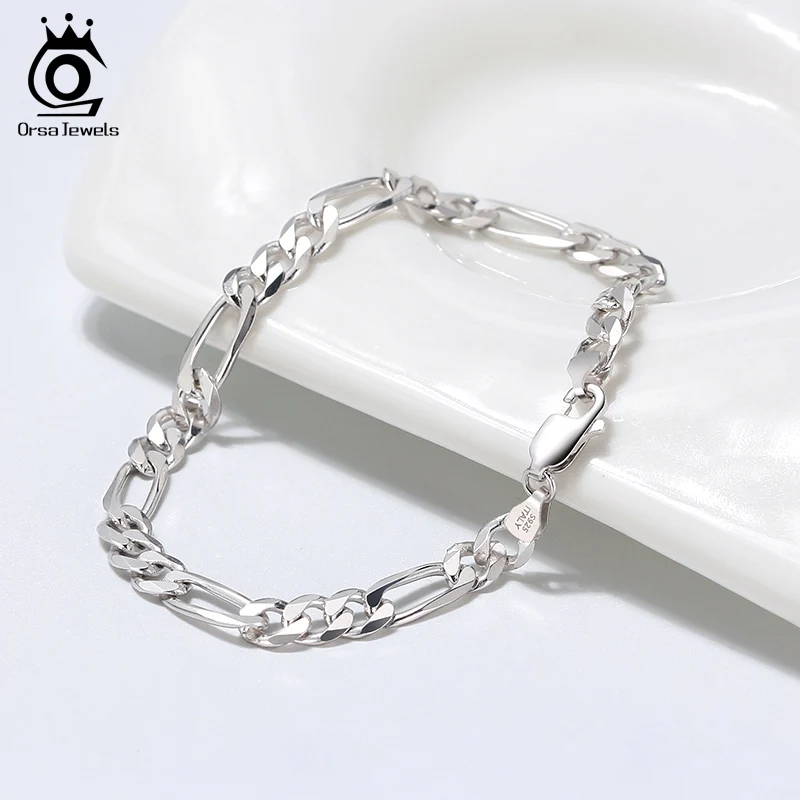 ORSA JEWELS, высокое качество, серебро 925 пробы, итальянский браслет, 6,5 мм, Figaro, звеньевая цепочка, браслет для женщин, мужчин, девочек и мальчиков, 6,5 дюймов до 8 дюймов, SB108