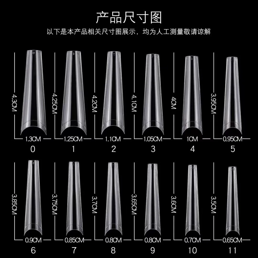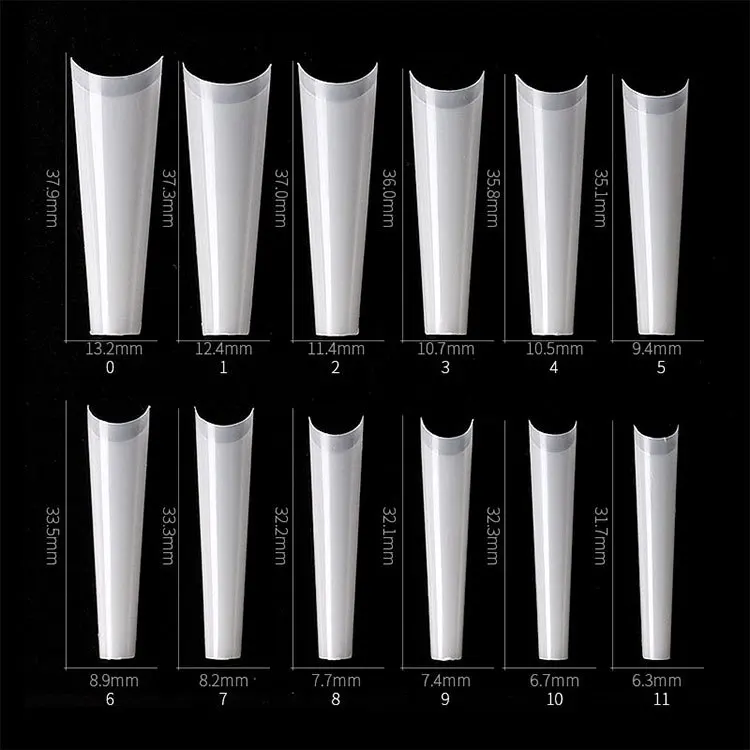 Тип изделия: накладные ногтиТип: C кривой XXL гроб Типсы для ногтейЦвет: прозрачныйРазмер: 0-11 размер, всего 12 размеров, по 20 штук
