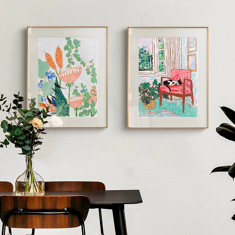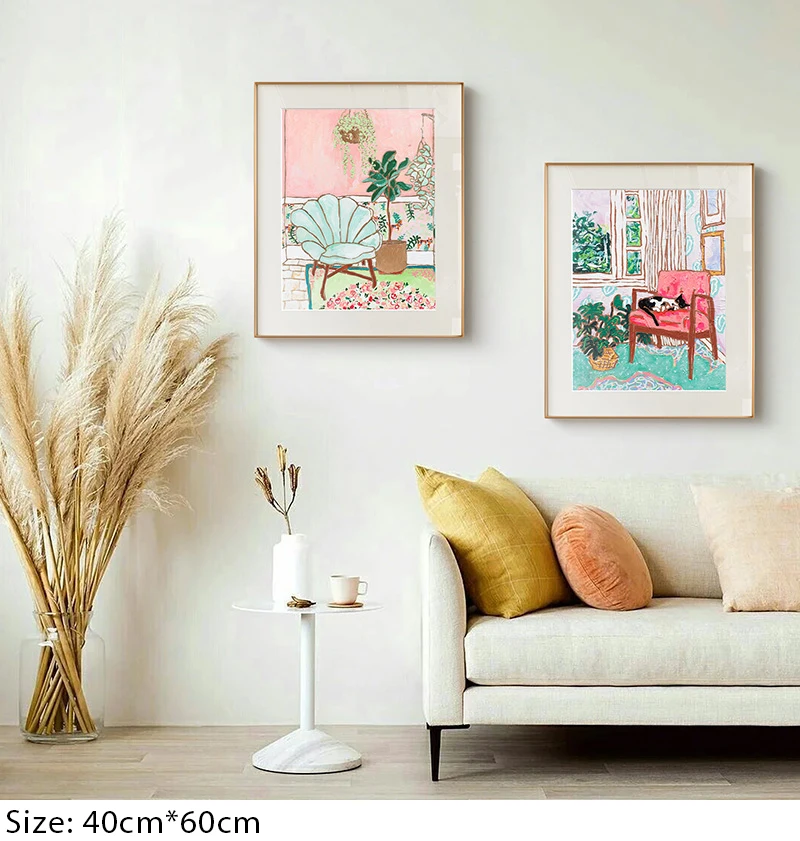 Европейский Ностальгический ретро масляной Живописи Диван Кошка плакат растений и печати настенные картины для Гостиная украшение дома