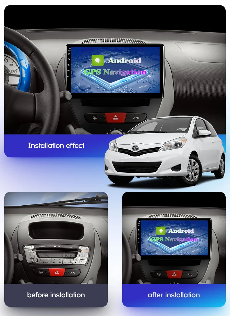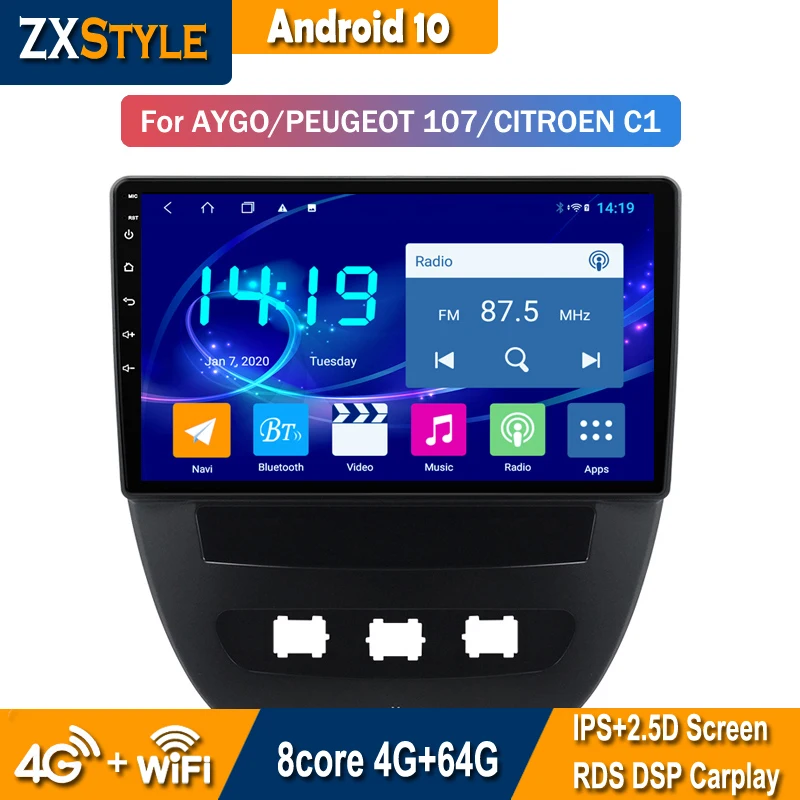 Автомобильный DVD-плеер, 4G + 64G, Android 10, GPS-навигация для Toyota Aygo, Peugeot 107, Citroen C1, интеллектуальная радиосистема
