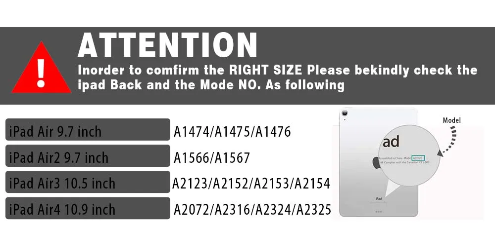 Номер моделиiPad Air /iPad Air 2/iPad Air 3 10.5 inch (2019)/iPad Air 4 2020 10.9