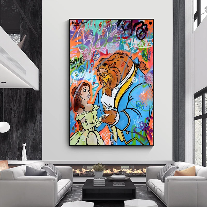 Disney беглец Принцесса Граффити уличное искусство холст животных П...