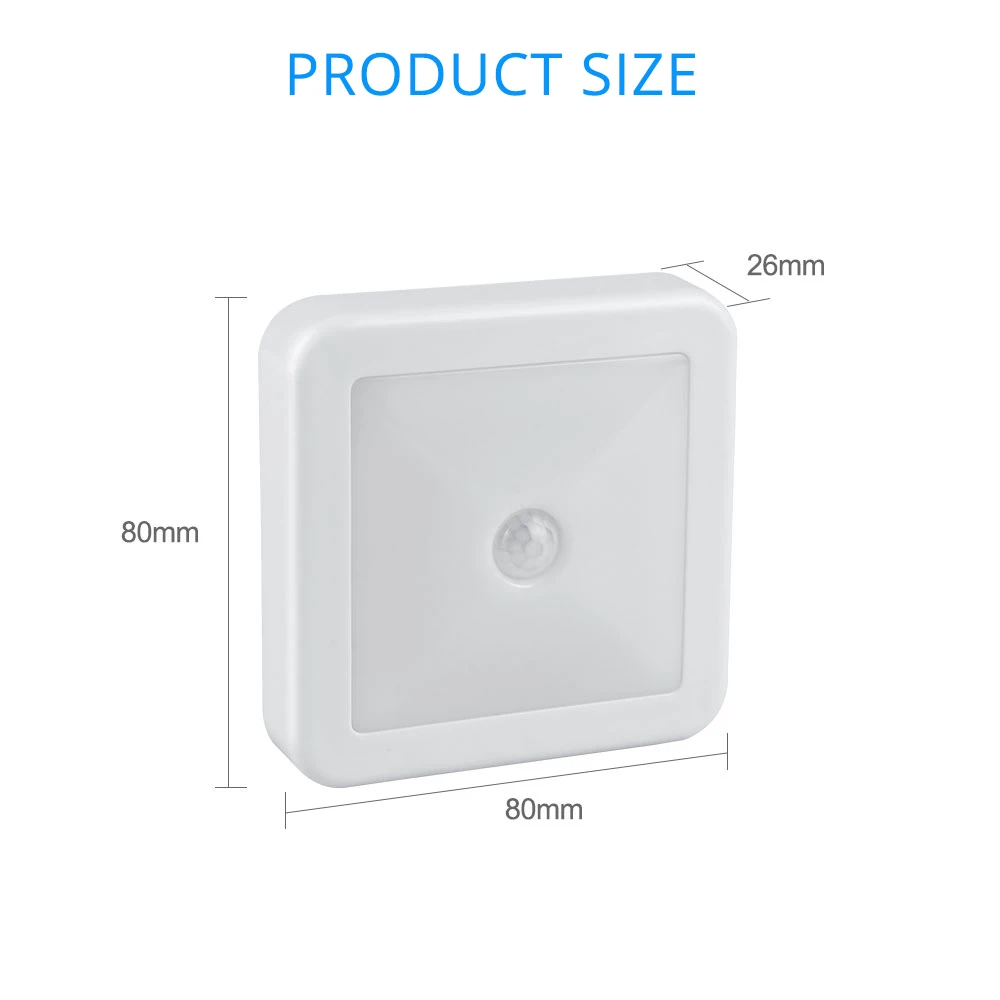 Спецификация:Тип: ночной СветильникМатериал: АБС-пластикКоличество: 1 шт.Цвет изделия: белый и теплый белыйМощность: 0,3 WСветовой поток: 30 лмДиапазон датчика движения: макс 3 м/9,8 футовУгол датчика: 100 градусовПрибл. Светильник с задержкой : 30sСветильник Цвет: холодный белый/теплый белыйБатарея: 3 * AAA батареи (не входят в комплект)Размер: 8*8*2,6 смСуществует три фактора, чтобы помочь нормальной работе Светодиодный светильник:1. Пожалуйста, убедитесь, что вы используете 3х батарею AAA [посылка в список не входит];2. Включается только в темной среде;3. Тело людей проходит через светодиодный светильник, вместо того, чтобы махать руками, чтобы проверить его [Светильник загорится, когда вы получите в пределах 3 метров, и он погаснет через 20 секунд после прогулки за пределами его диапазона чувствительности.]Посылка включает:1 * Ночной Светильник (аккумулятор не входит в комплект)1 * наклейка