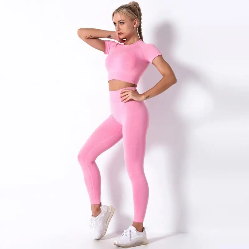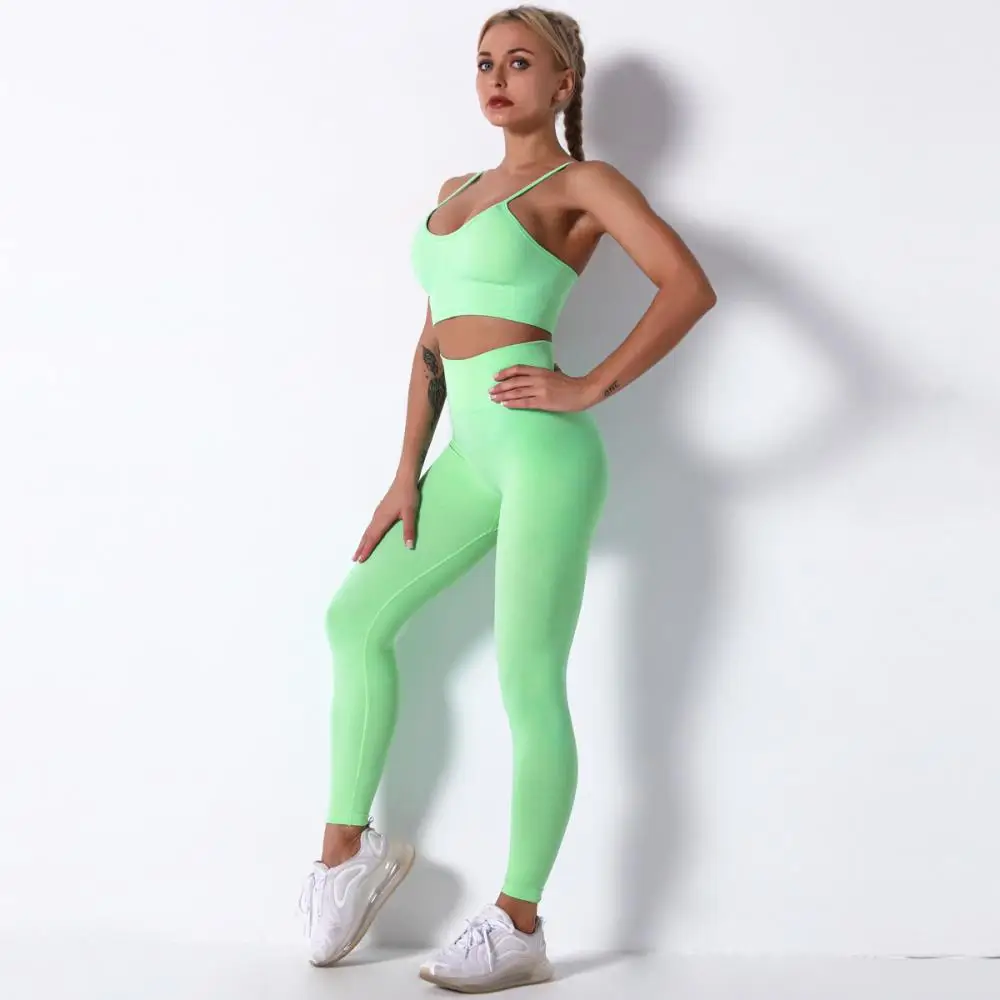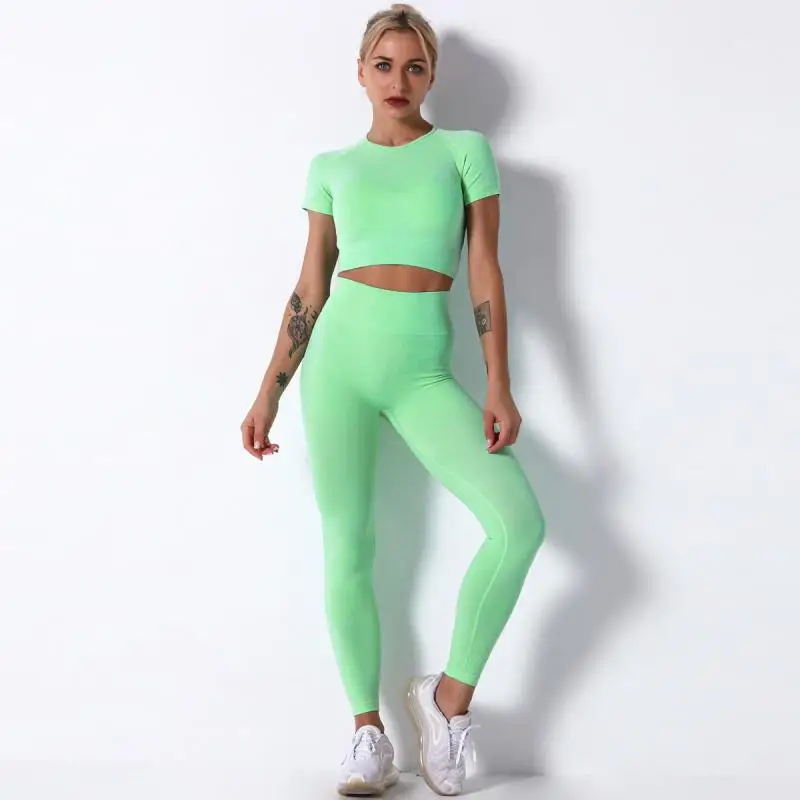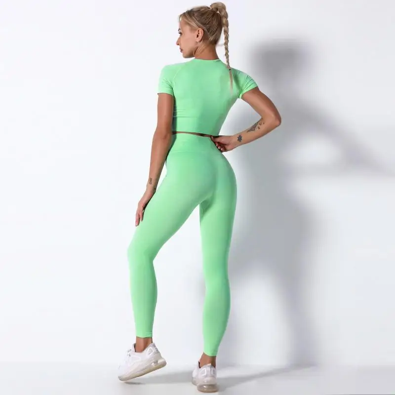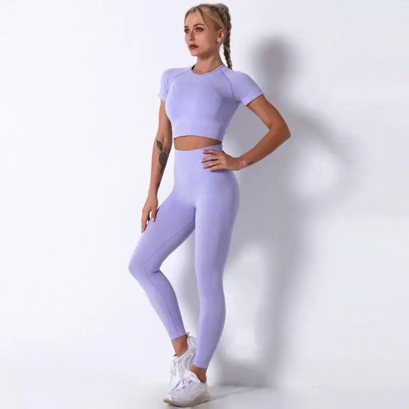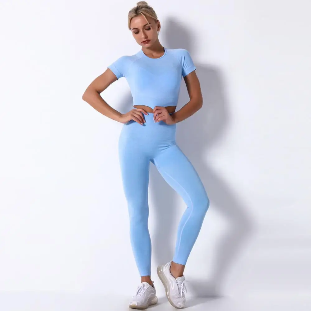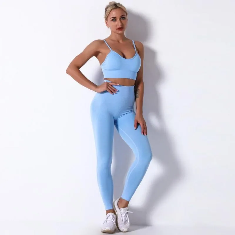 Бесшовный Женский комплект для йоги, спортивный костюм из двух предметов, женская спортивная одежда для тренировок, одежда для спортзала, бесшовные леггинсы с высокой талией, спортивный топ