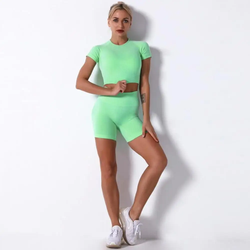 Комплект бесшовный Женский для йоги, спортивный короткий топ футбол...