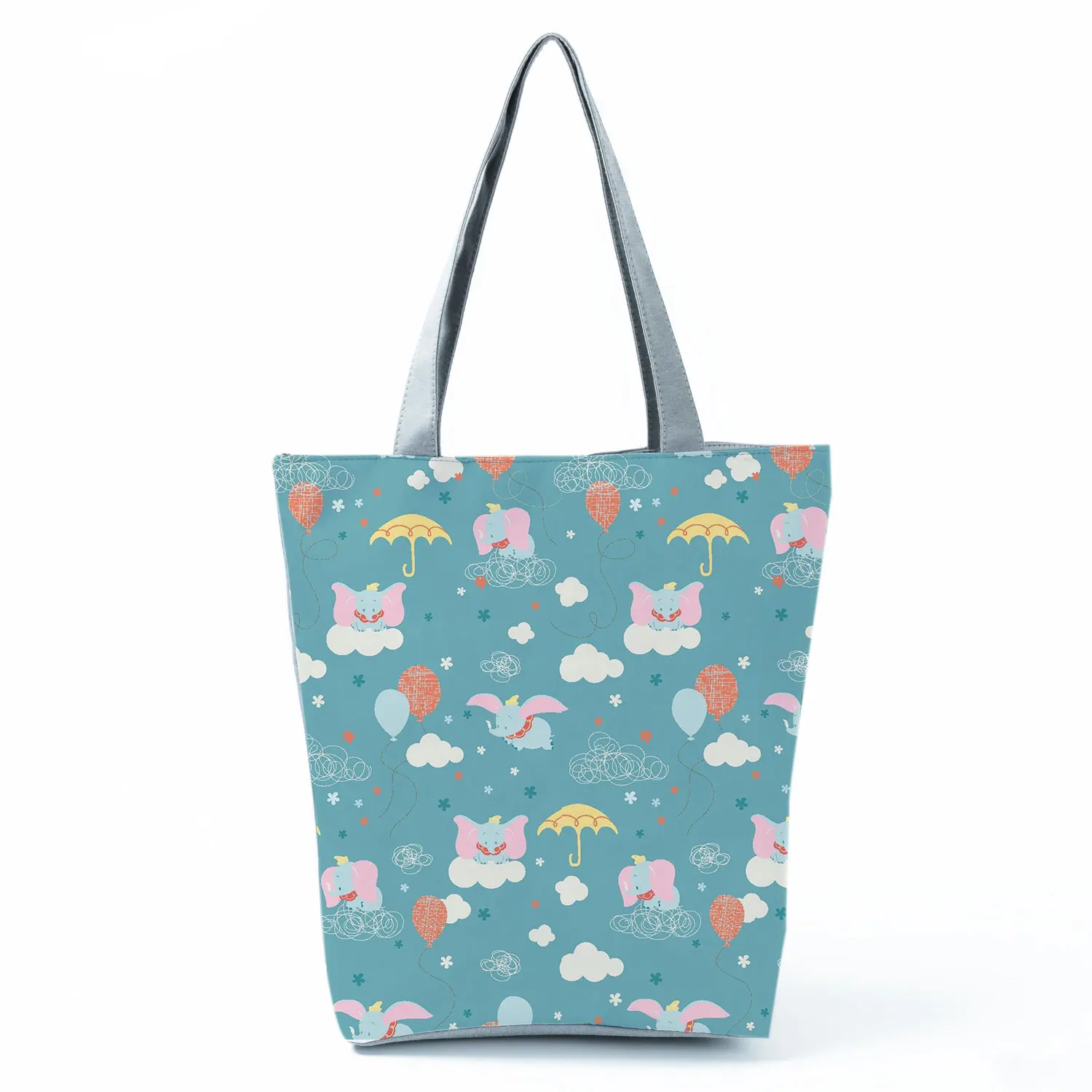 Дамбо печатная сумка Дисней Сумка-тоут с милым слоном из мультфильма Высокая вместительная сумка воздушный шар женская сумка через плечо сумка для покупок на заказ с узором