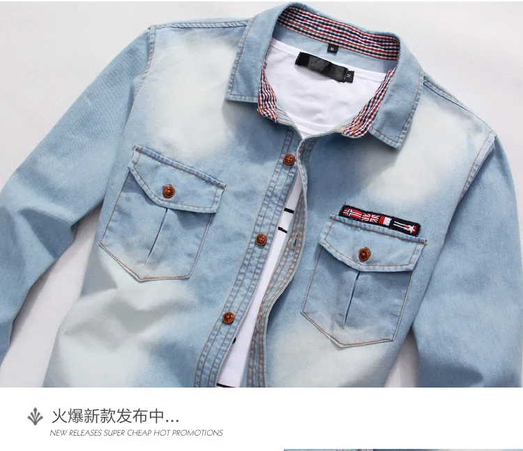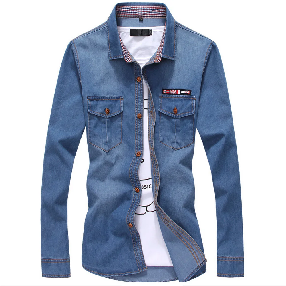 Рубашка джинсовая мужская, из хлопка, с длинным рукавом, осенняя