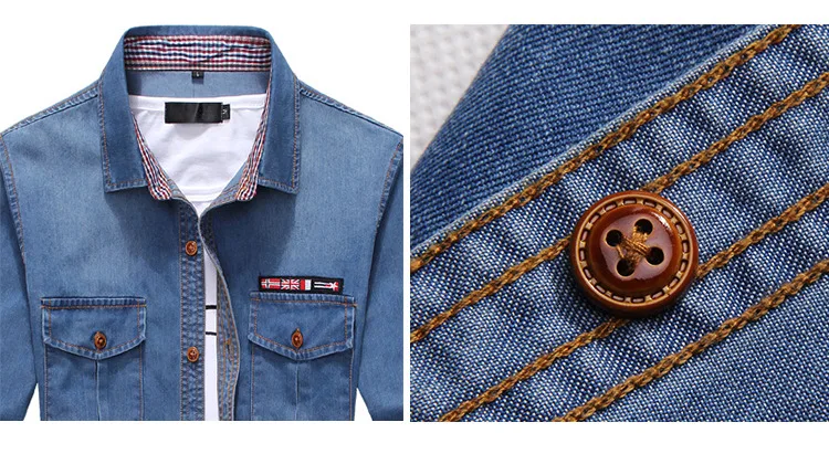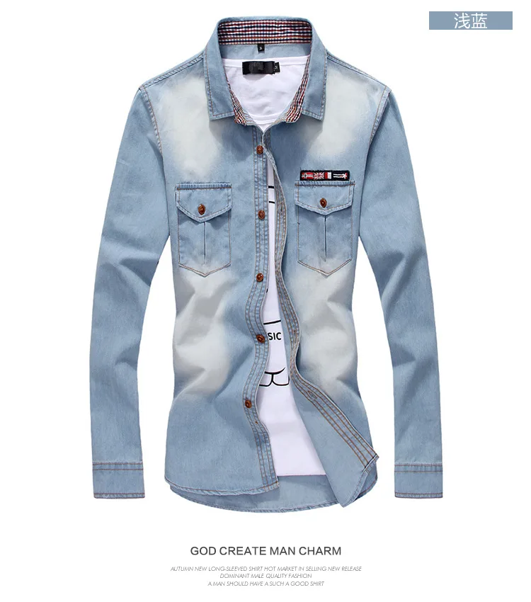 2021 Camisa Jeans мужские синие джинсовые рубашки мужские ковбойски...