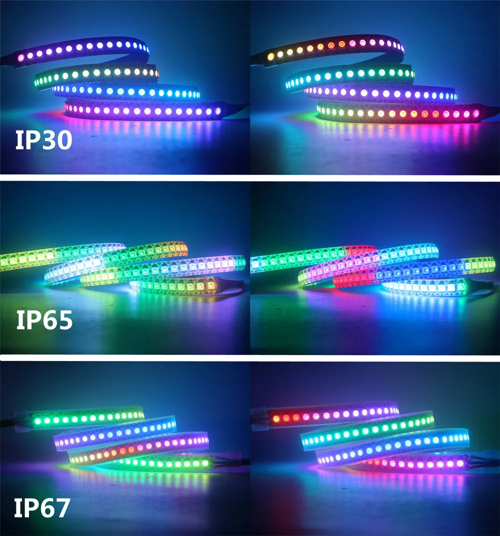 USB контроллер + DC5V WS2812B WS2812 светодиодные полосы, индивидуально адресуемых Smart цветных (RGB) светодиодных лент, комплект, черный/белый PCB 30/60/144 светодиодов/m