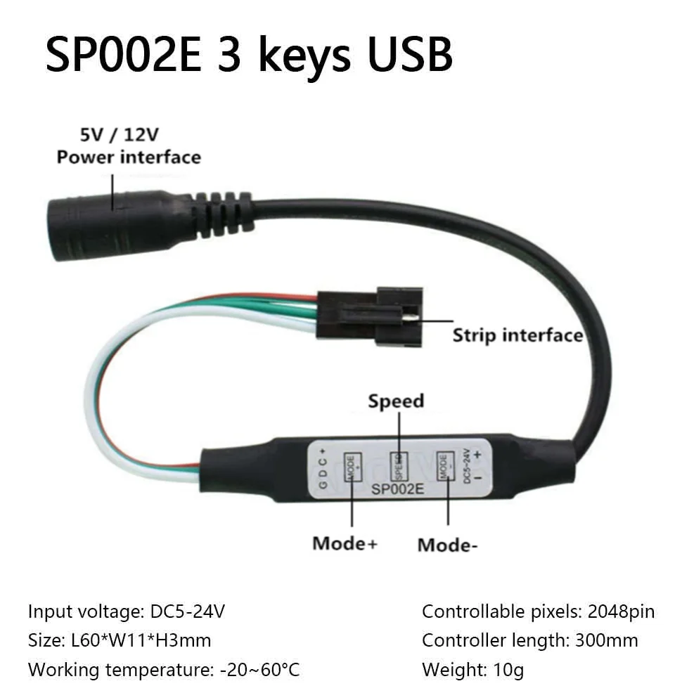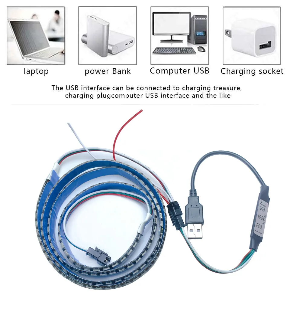 USB-контроллер + светодиодная лента WS2812B WS2812 5 в постоянного тока, индивидуально Адресуемая умная RGB Светодиодная лента, чернаябелая печатная плата 3060144 светодиодовм