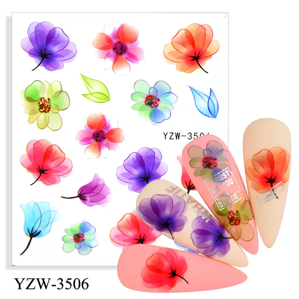 Цветок, листья, водные цветные наклейки для ногтей, Водные Наклейки для ногтей, переводные наклейки для ногтевого дизайна, украшения листьев