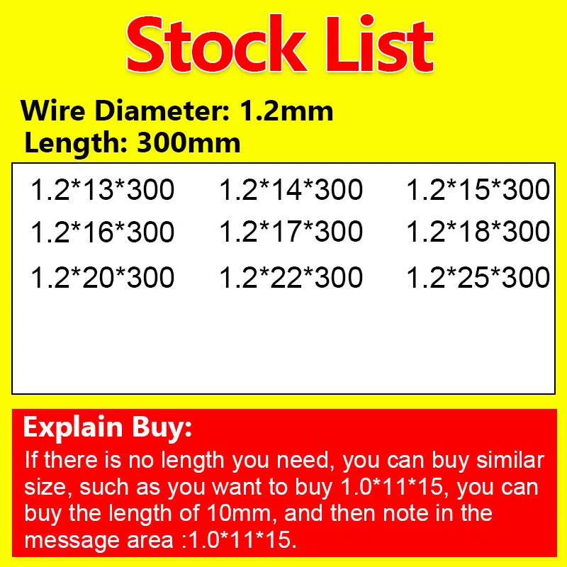 Например: 1,0X11X10 (диаметр проволоки 1,0 мм, наружный диаметр 11 мм, длина составляет 10 мм.)