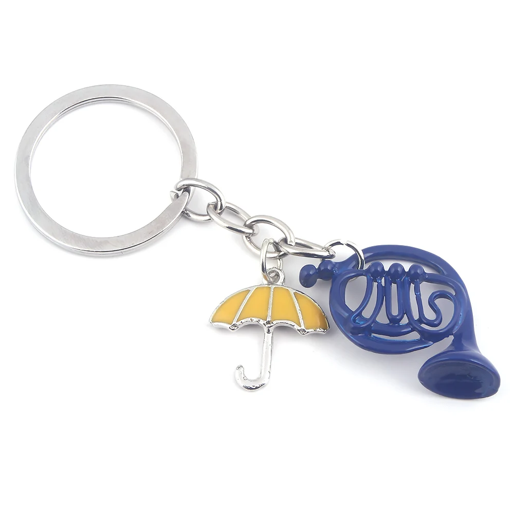 Брелок для ключей Как я встретил, Я-твою маму, желтый зонтик, музыкальный инструмент, брелок с французским рогом синего цвета для женщин и мужчин, ювелирные изделия