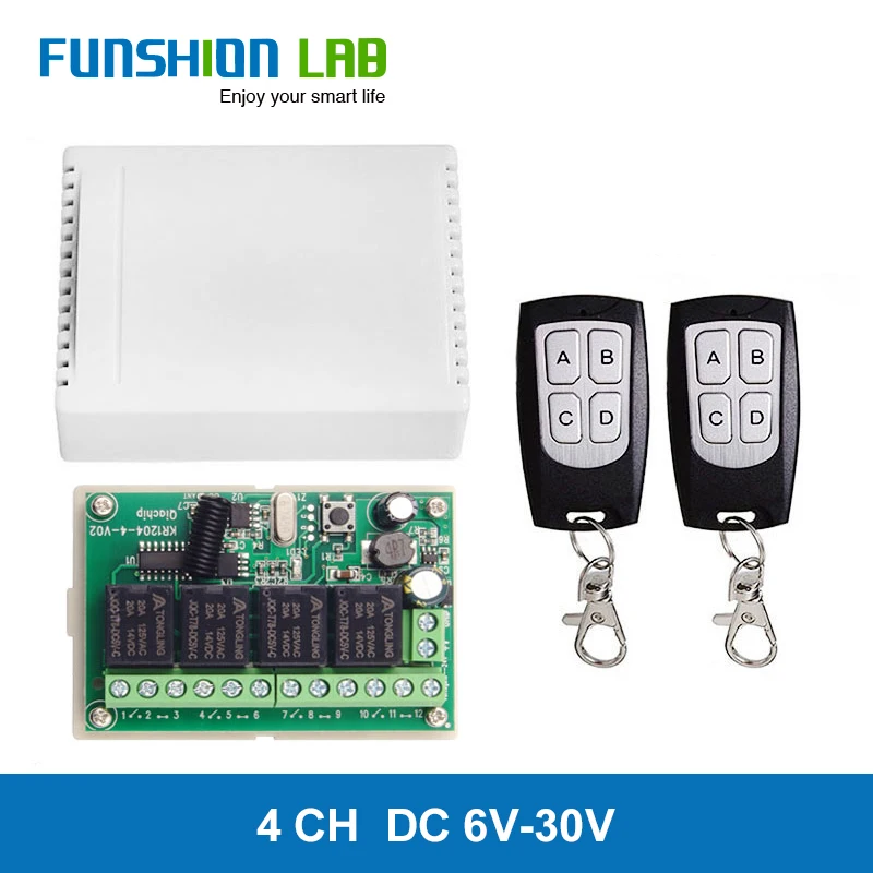 FUNSHION 433 МГц получатель Беспроводной дистанционного Управление однофазный электродвигатель Управление; С источником питания от постоянного тока, 6 в, 12 В, 24 В постоянного тока, 30V 4 банды триггерный релейный модуль передатчик "сделай сам"