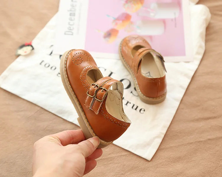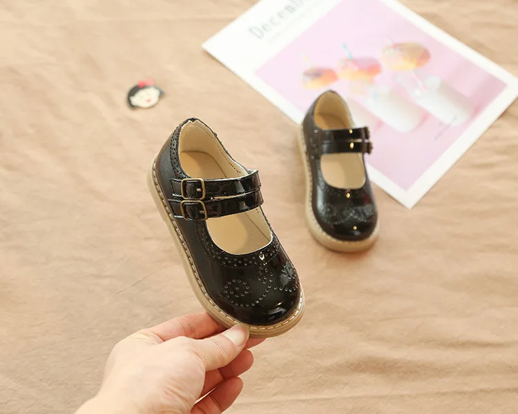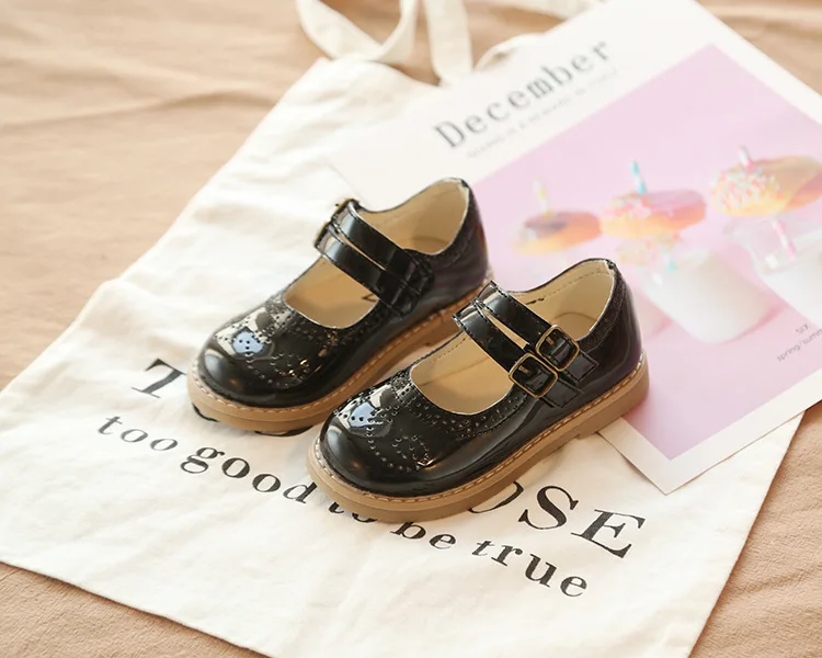 Кожаные туфли для девочек, повседневная обувь из искусственной кожи, ярко-красные, на плоской подошве, черные, коричневые, размеры 21-30, для осени и зимы
