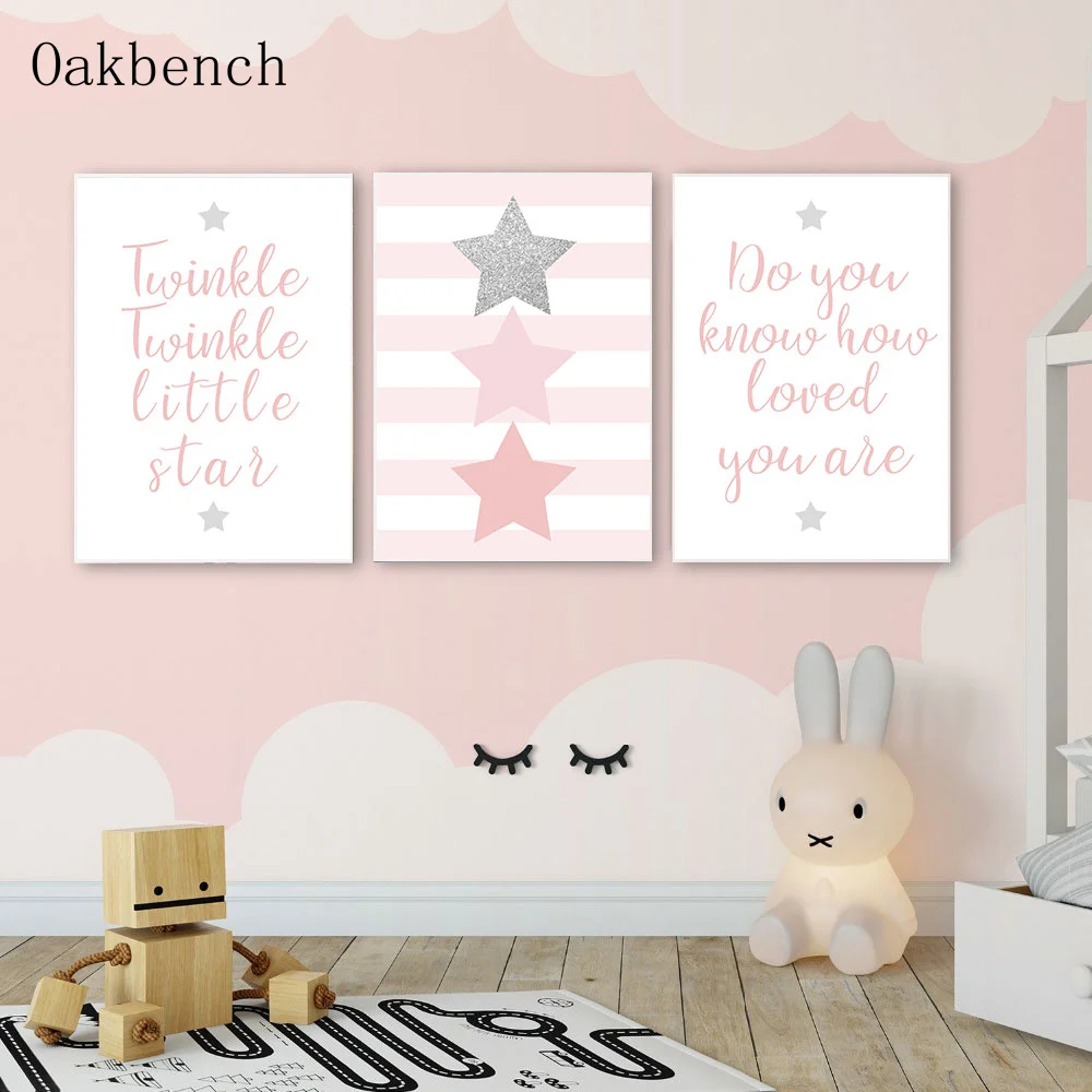 Картина на холсте со звездами, Настенная картина для детской комнаты, Розовая кошка, цветок, балетная девушка, постер с именем на заказ, печать, картина в скандинавском стиле, детская комната, домашний декор