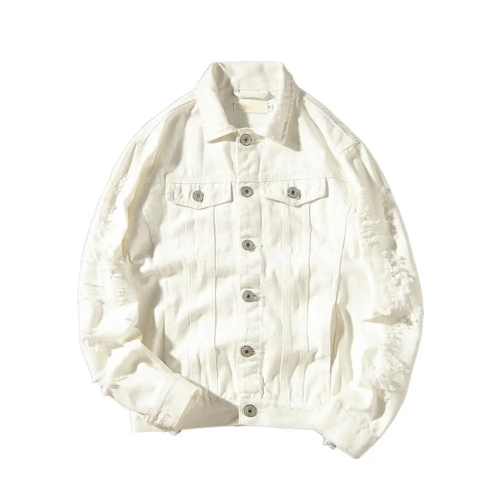 Мужская джинсовая куртка, приталенная куртка из хлопка, с дырками, ...