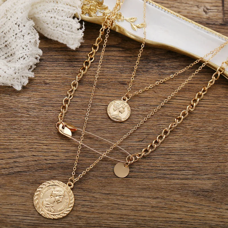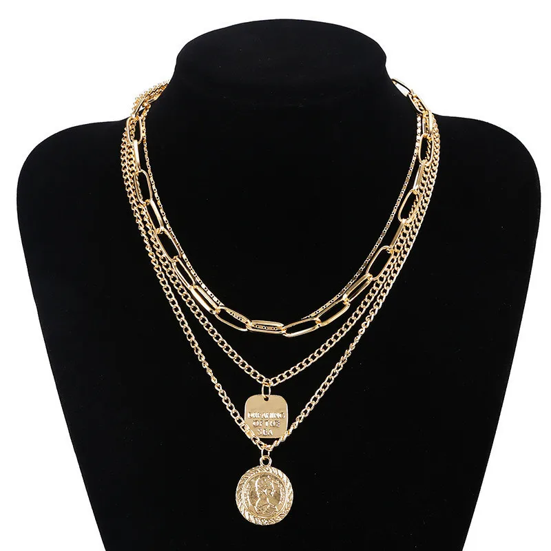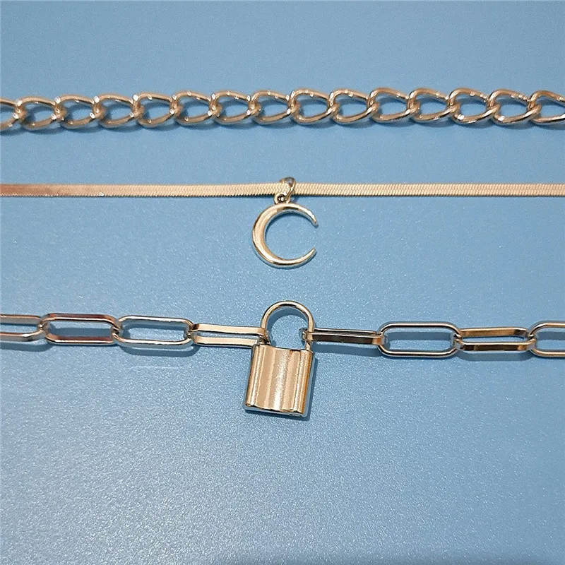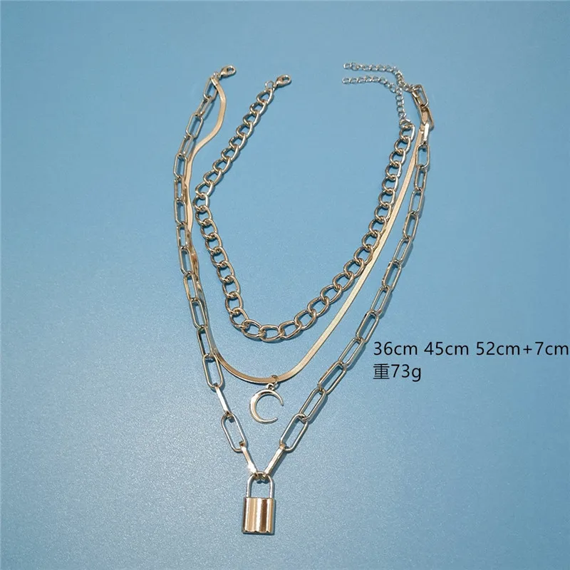 2021 новый в богемном стиле, в стиле панк, многоуровневый Подвески толстая цепочка ожерелья старинные ювелирные изделия замок в форме полумесяца ожерелье для женщин вечерние, ювелирное изделие, подарок