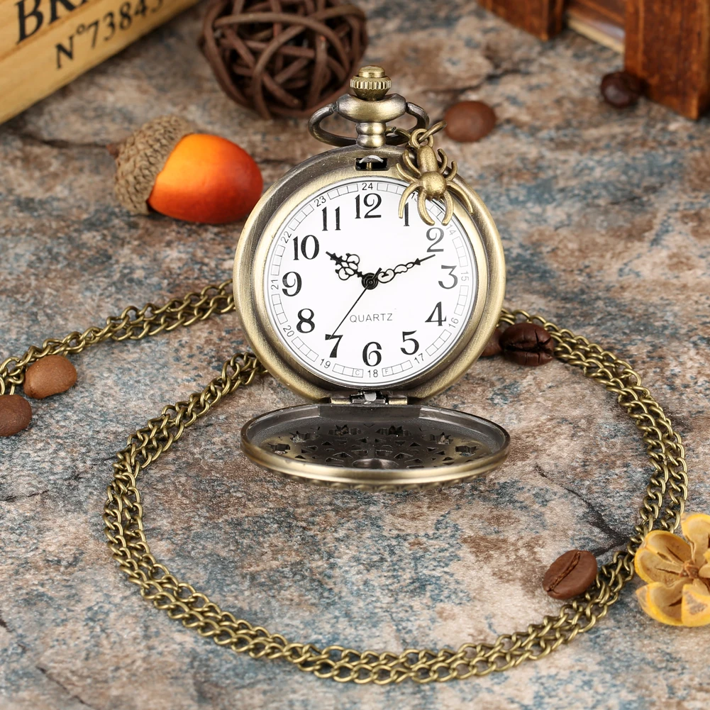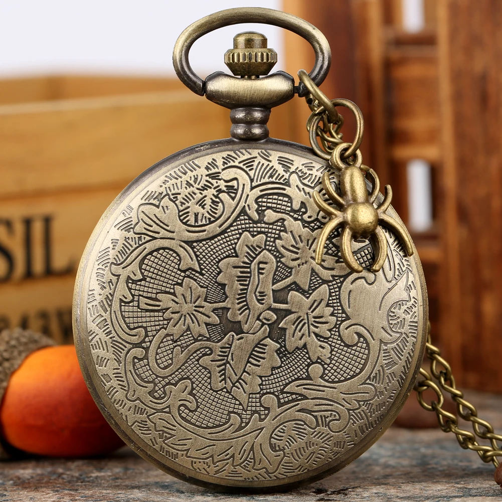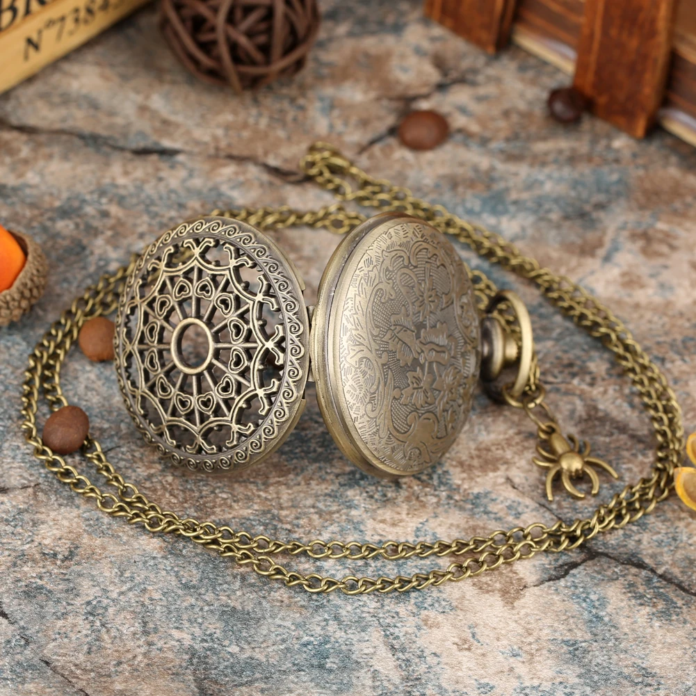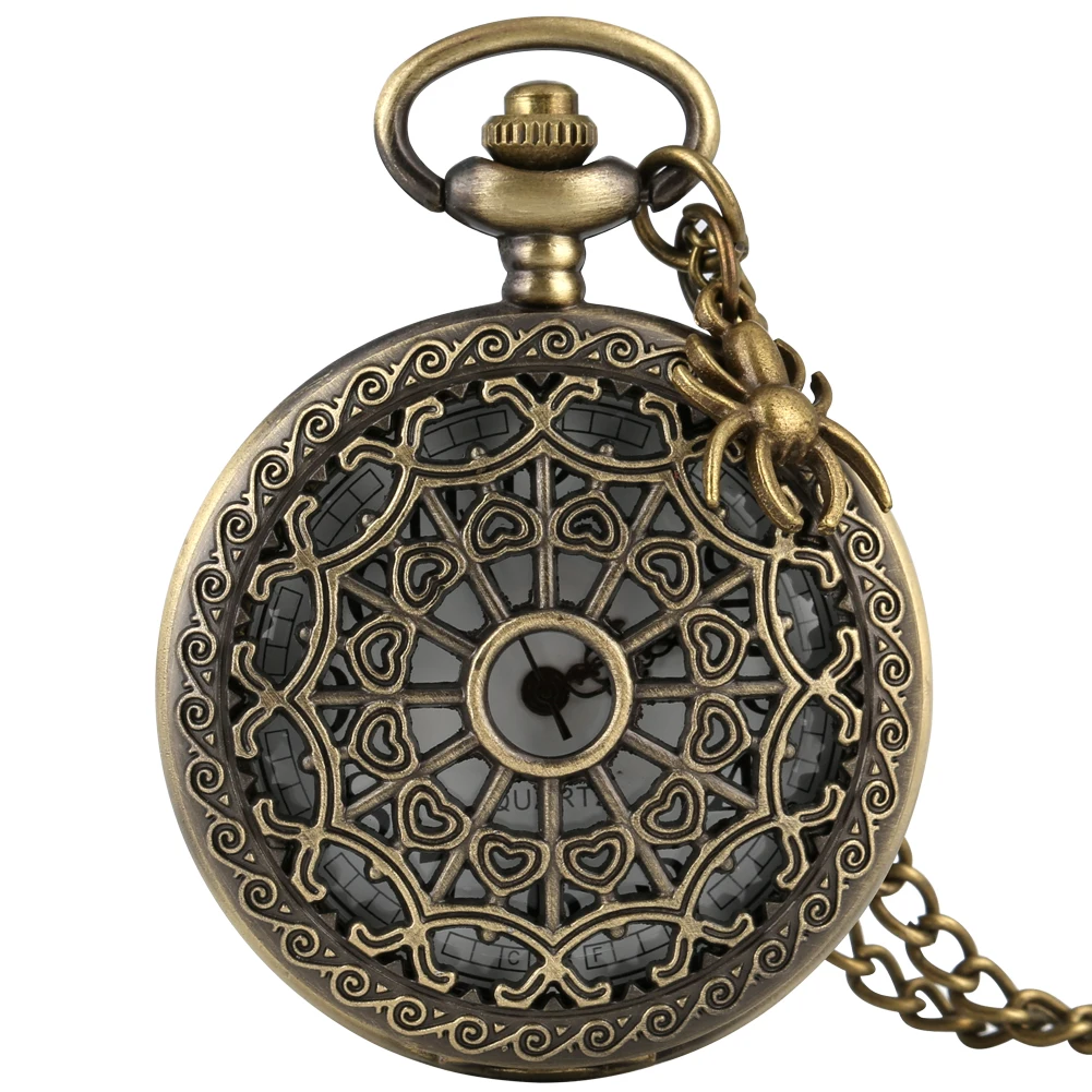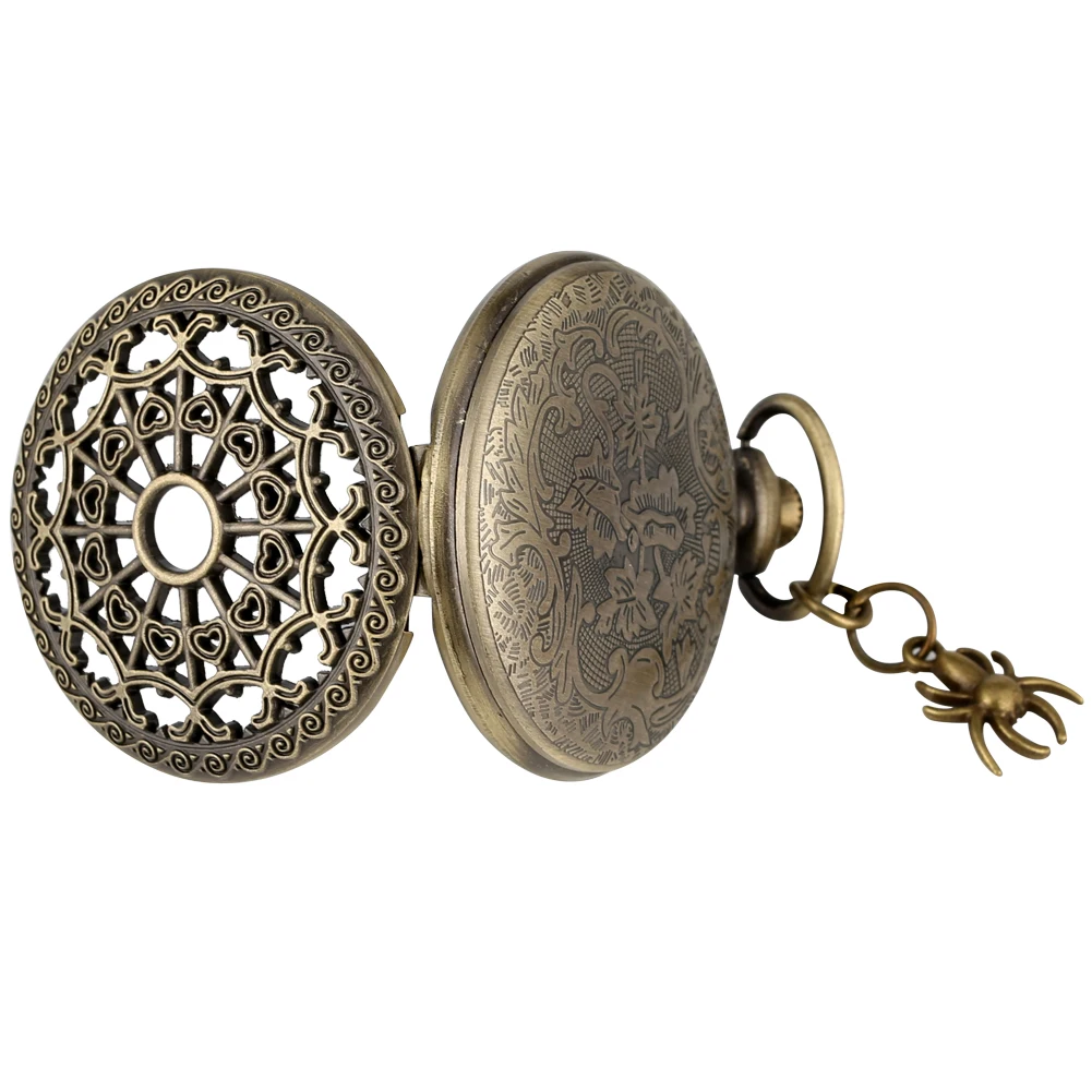 Часы наручные мужскиеженские кварцевые в стиле ретро, бронзовые карманные с подвеской-паутиной, с цепочкой-брелком, с аксессуаром, в ретро стиле