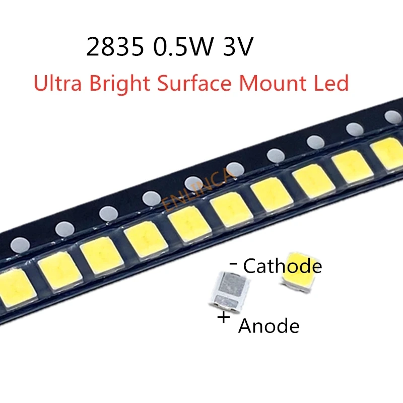 100 шт. SMD СВЕТОДИОДНЫЙ 2835 теплый холодный белый Чип 0,5 Вт 3,0-3,6 В 150мА 45-50 лм ультра яркий светодиод для поверхностного монтажа