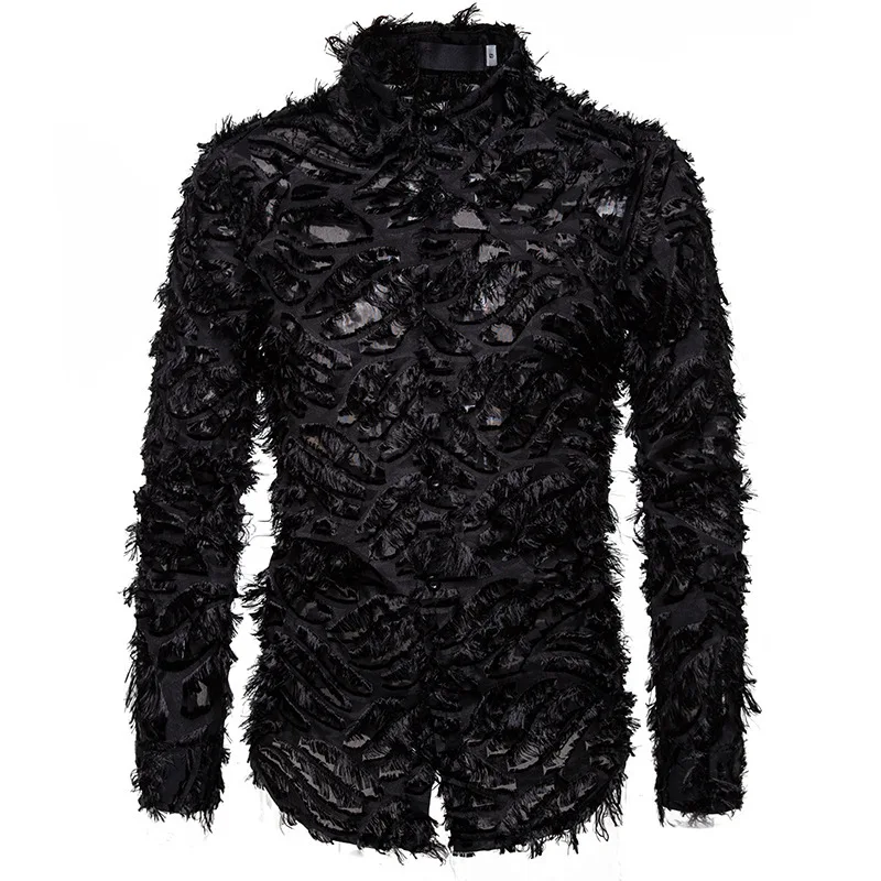 Сексуальная черная кружевная рубашка с перьями, мужская, 2020, модн...