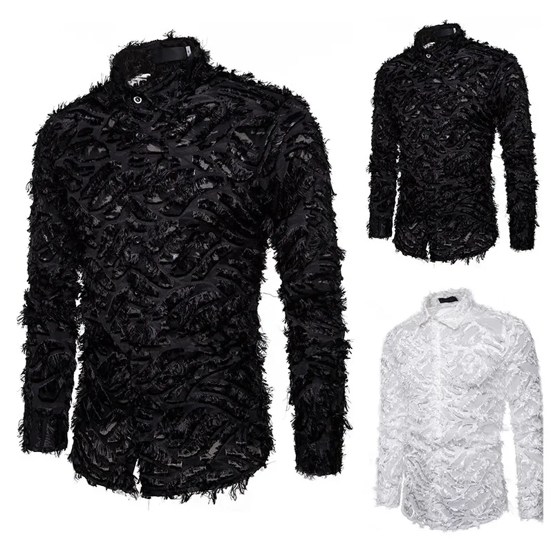 Мужская прозрачная сетчатая рубашка с перьями, однотонная кружевная...