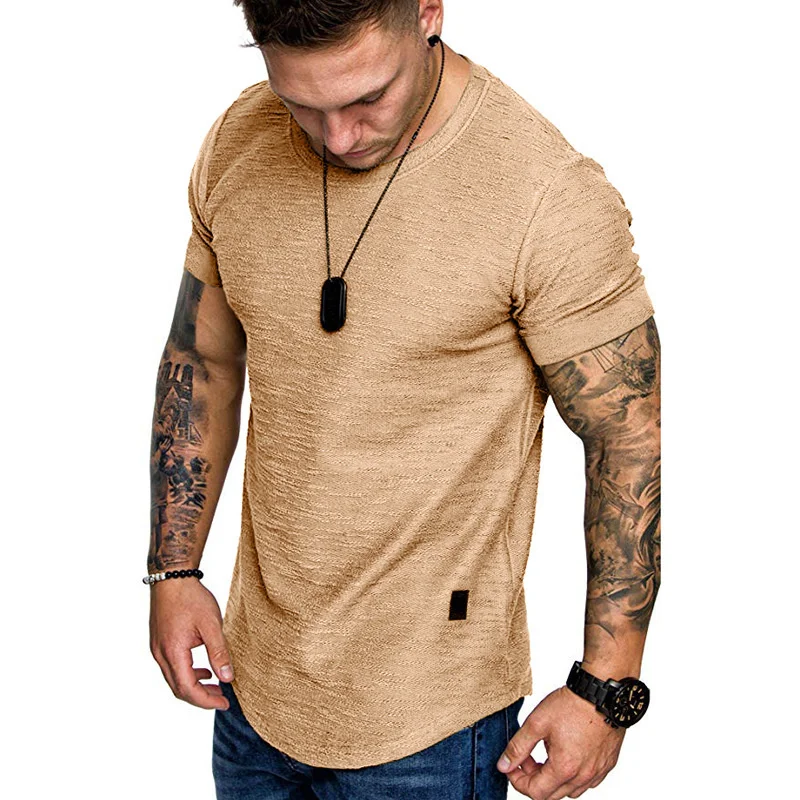 2020 Летняя мужская однотонная летняя футболка, круглый вырез, коро...