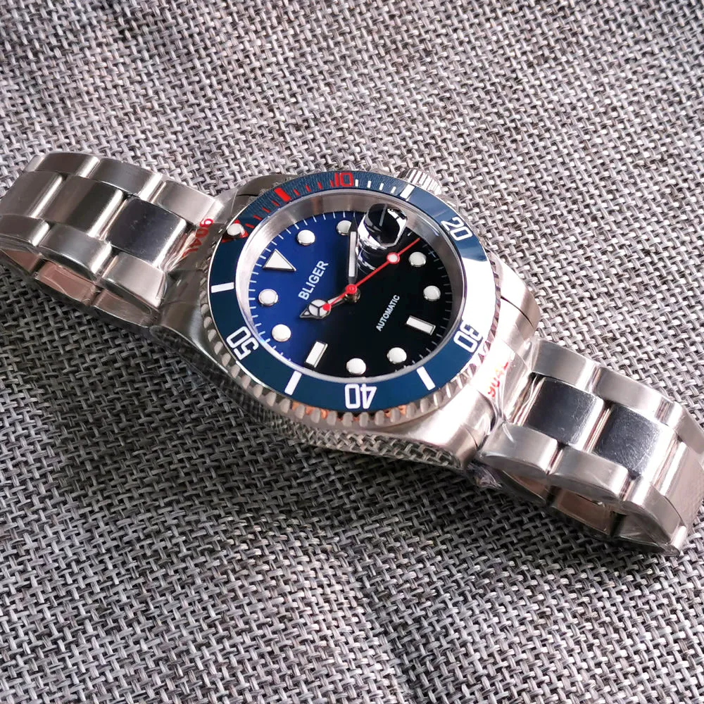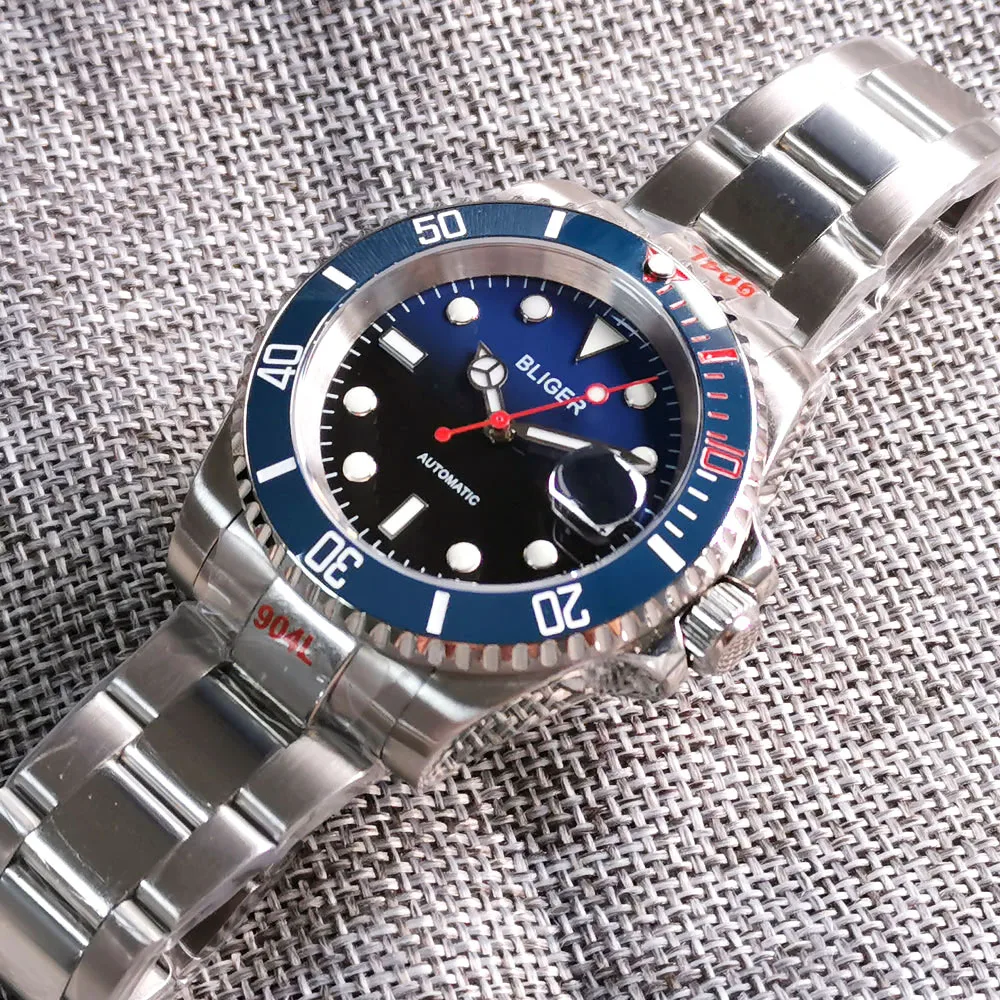Bliger 40 мм Для мужчин часы Япония NH35Miyota 8215 автоматический переход Для мужчин t цвет: черный, синий циферблат Дата Циклоп сапфир 904L босоножки с ремешками на лодыжке; Босоножки с красным во-вторых