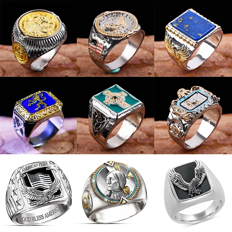 Роскошные мужские кольца посеребренные геометрические резные кресты Крупное кольцо на палец Подарок на годовщину винтажные мужские ювелирные изделия