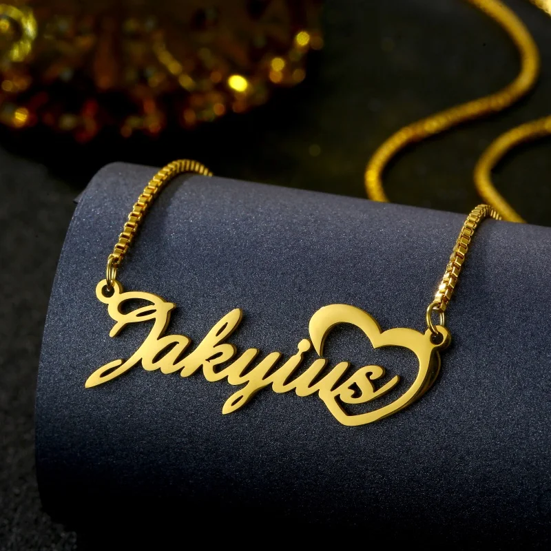 Пользовательское имя золотое украшение на шею с коробка из нержавеющей стали цепи персонализированные подвески в виде сердца для женщин и мужчин, Ювелирное Украшение-подвеска с буквой подарки